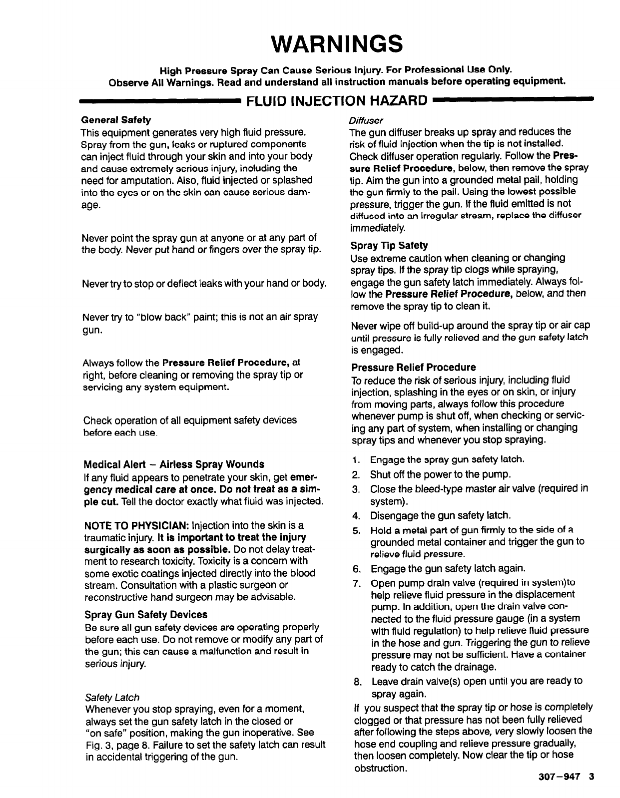 High Pressure Spray Can Cause Serious Injury. For Professional Use Only.