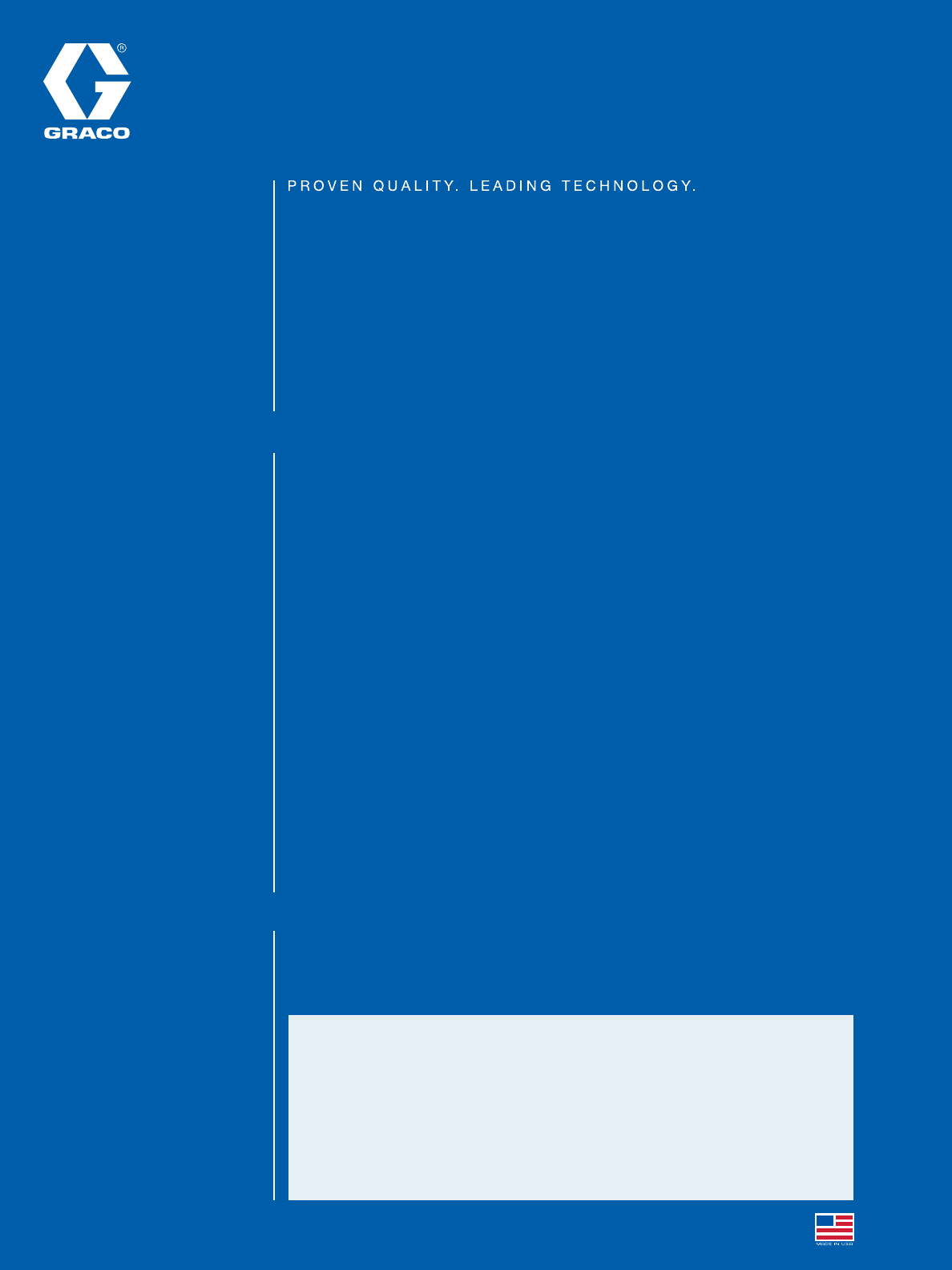 manufacturing and unparalleled customer service. Working closely with qualified distributors, Graco