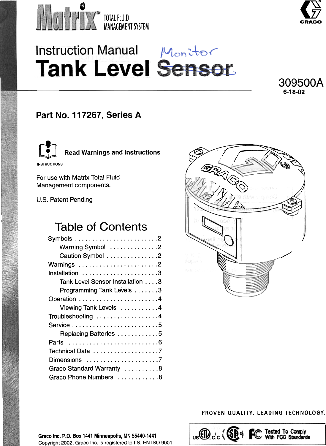Graco Inc Matrix Tank Level Monitor Operational Manual