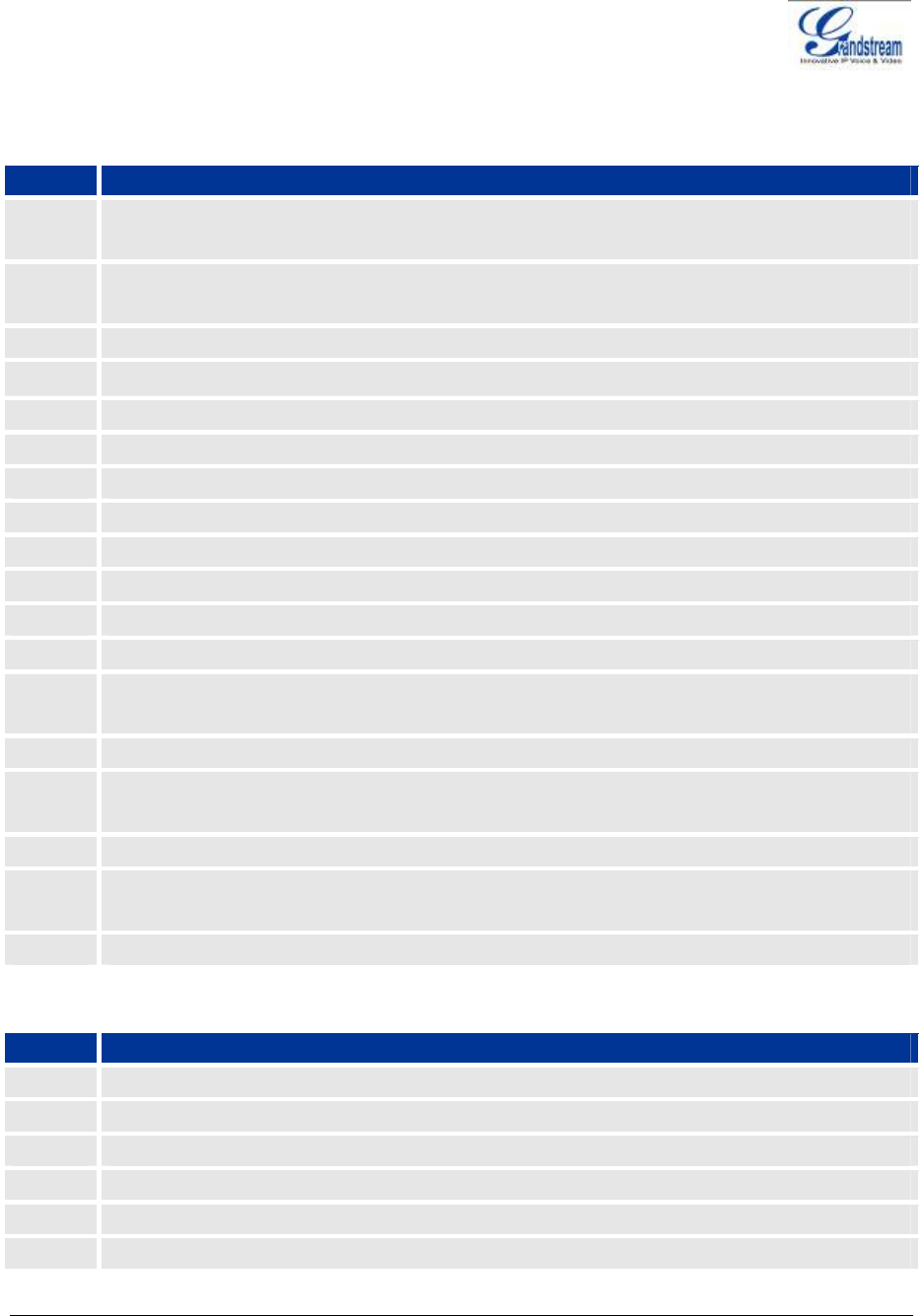 Table 9 :GXV3175 Call Features ................................................................................................................ 36