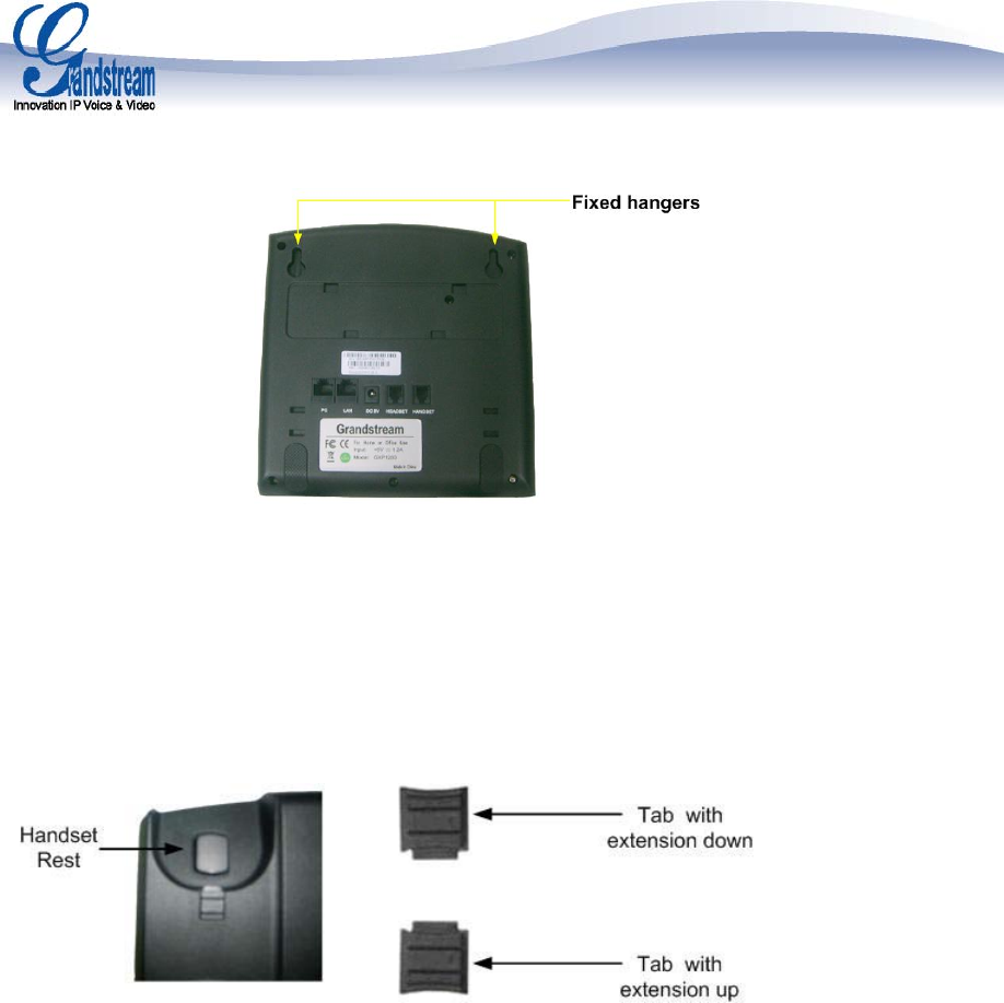 To position the phone on the wall, place two fixed hangers on the wall, hang