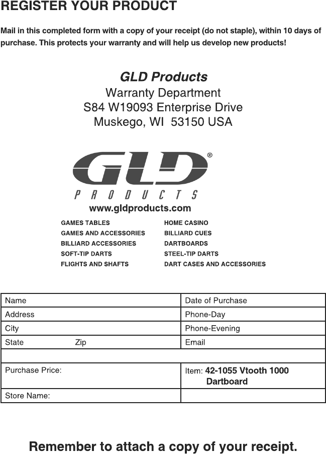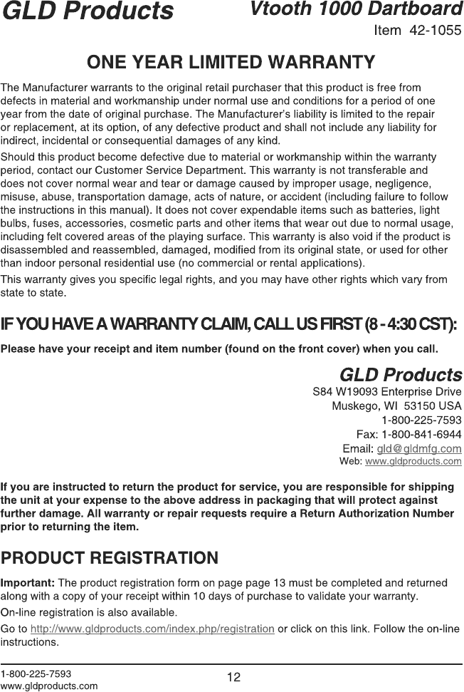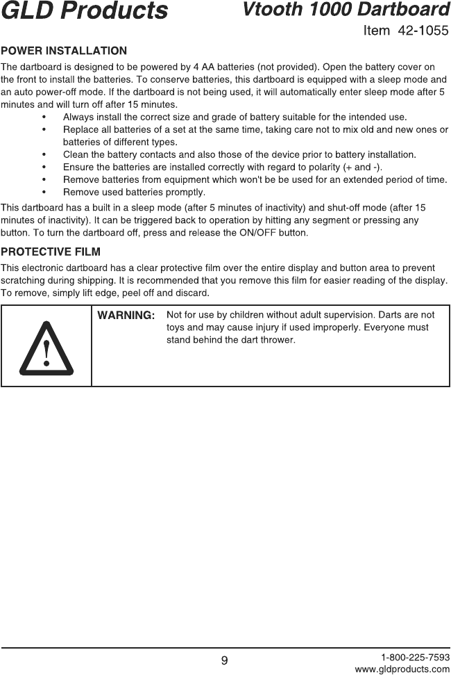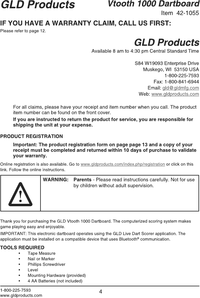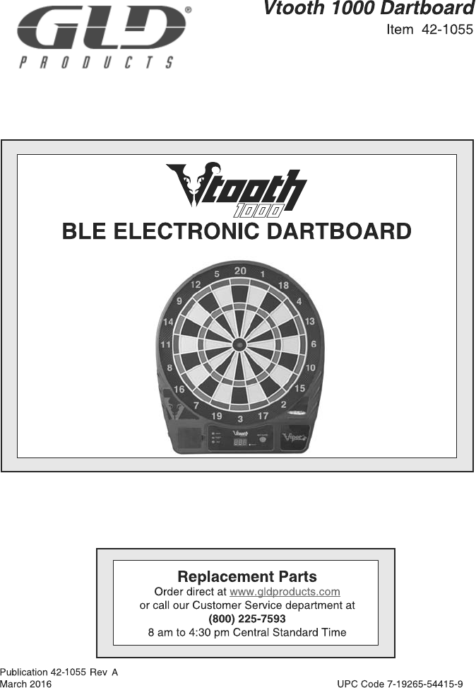 Great Lakes Dart Mfg 42-1055 VTooth 1000 User Manual 42 1055 VTOOTH indd