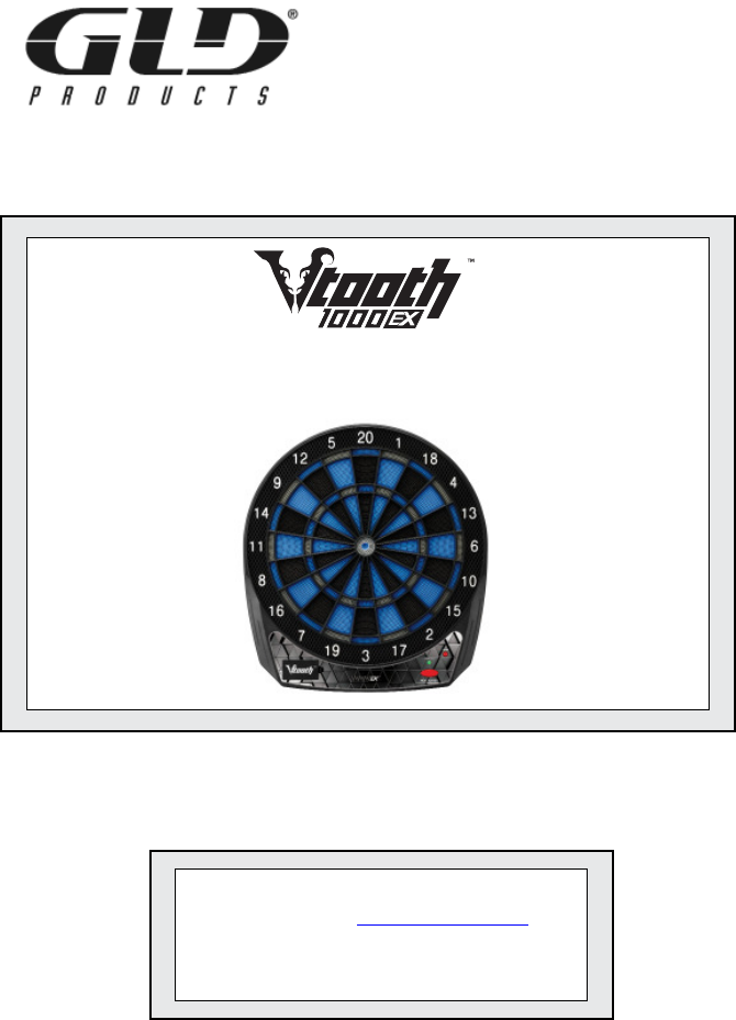 Thank you for purchasing the GLD Vtooth 1000EX Dartboard. The computerized scoring system makes