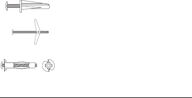 2. If a stud cannot be located or is not in the proper location, use the plastic anchors and screws.