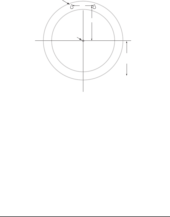 1. Use the two keyhole slots and mount the center of the dartboard following the illustration. The two