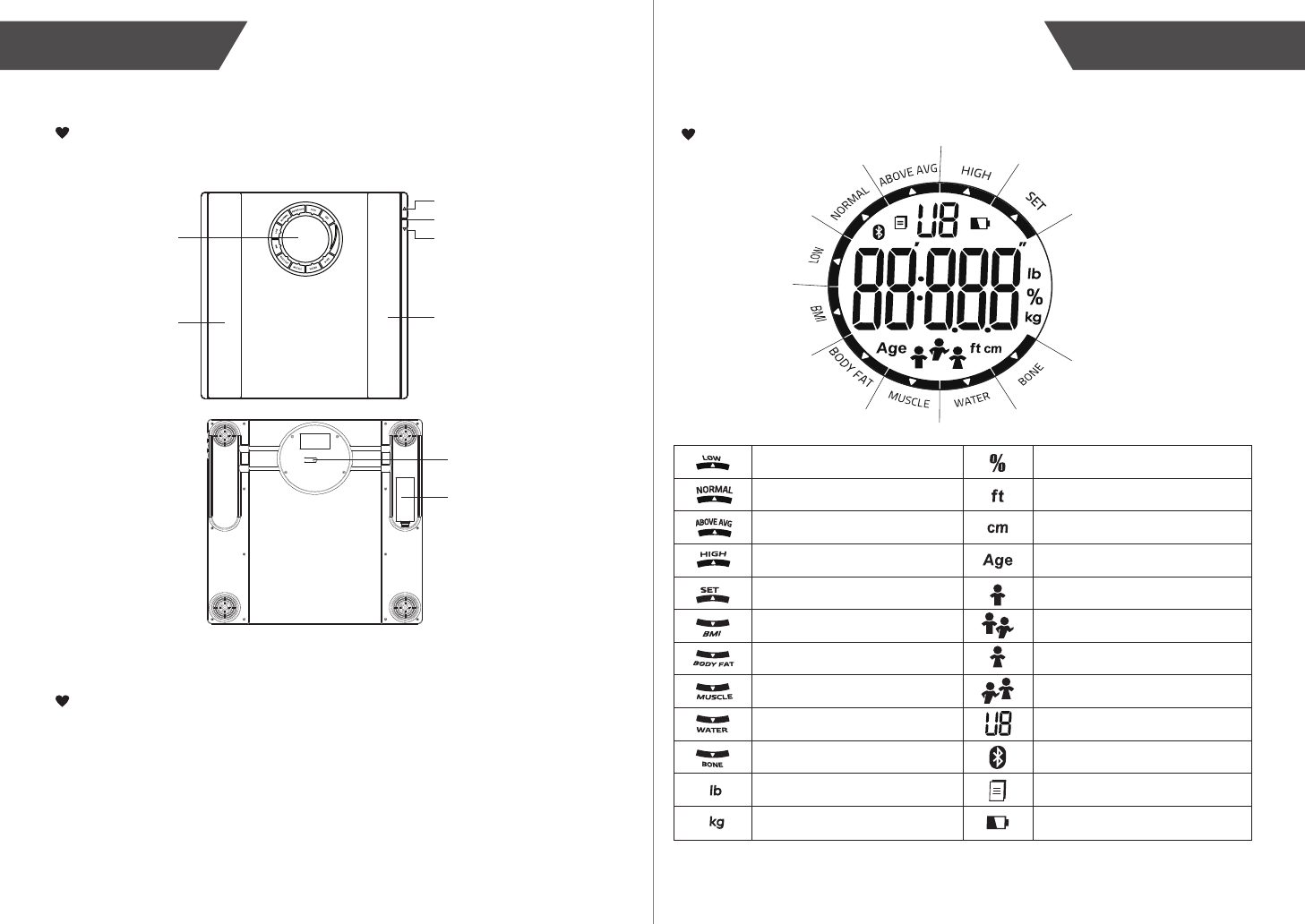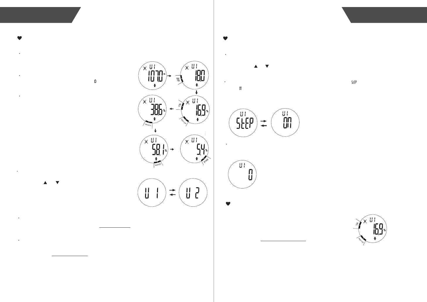 a) The body fat percentage (%): 5%-60%/0.1%