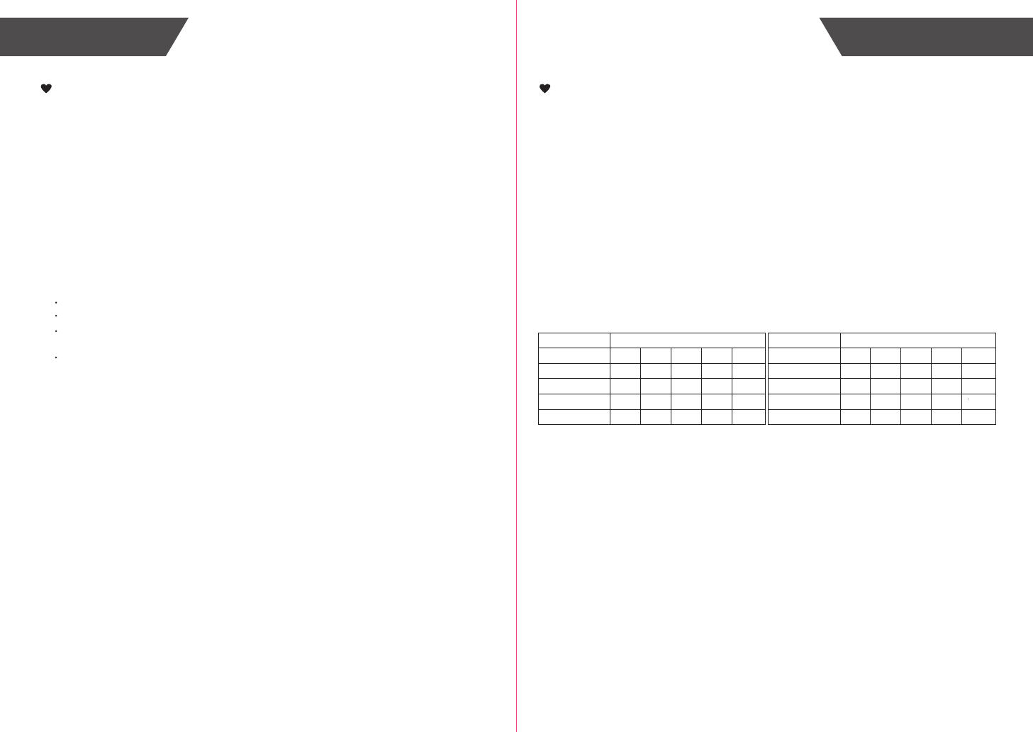 Table of Body Water Level (Unit: %)