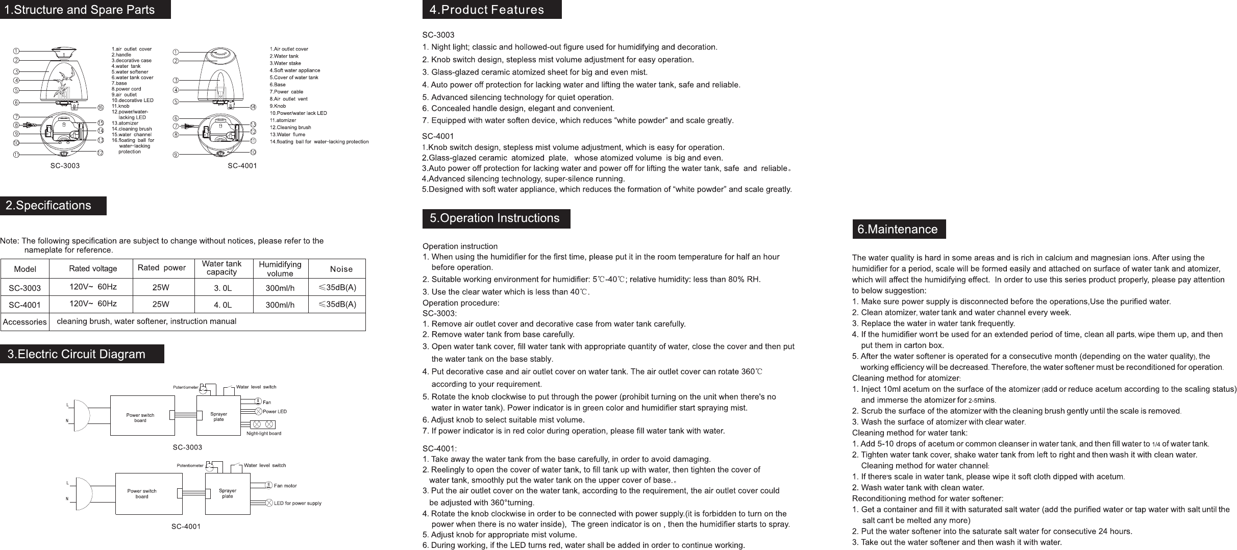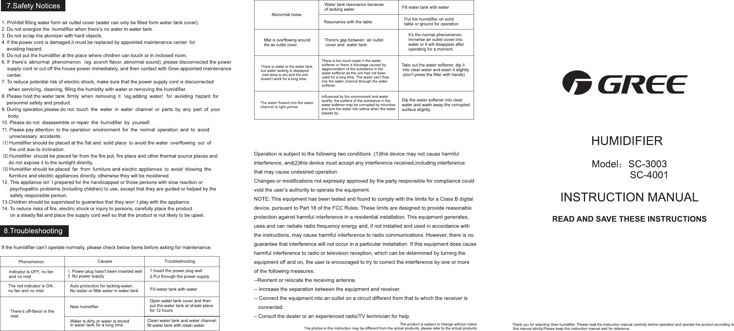 Gree Electric Appliances of Zhuhai SC-3003 Ultrasonic humidifier User Manual FCC