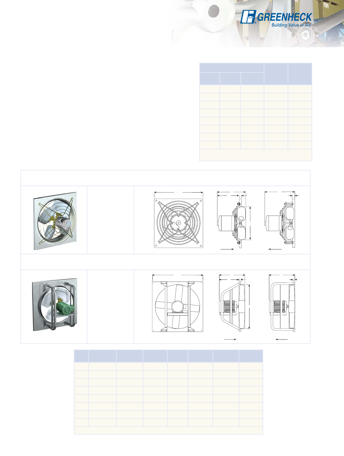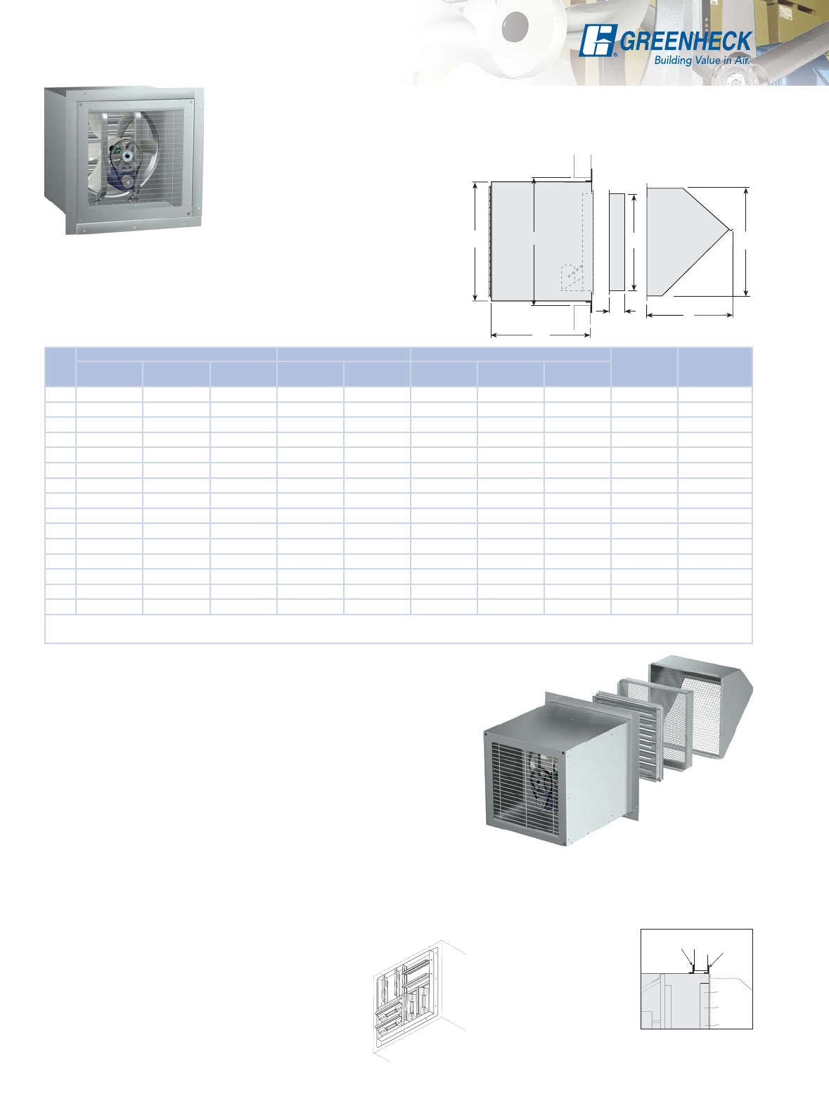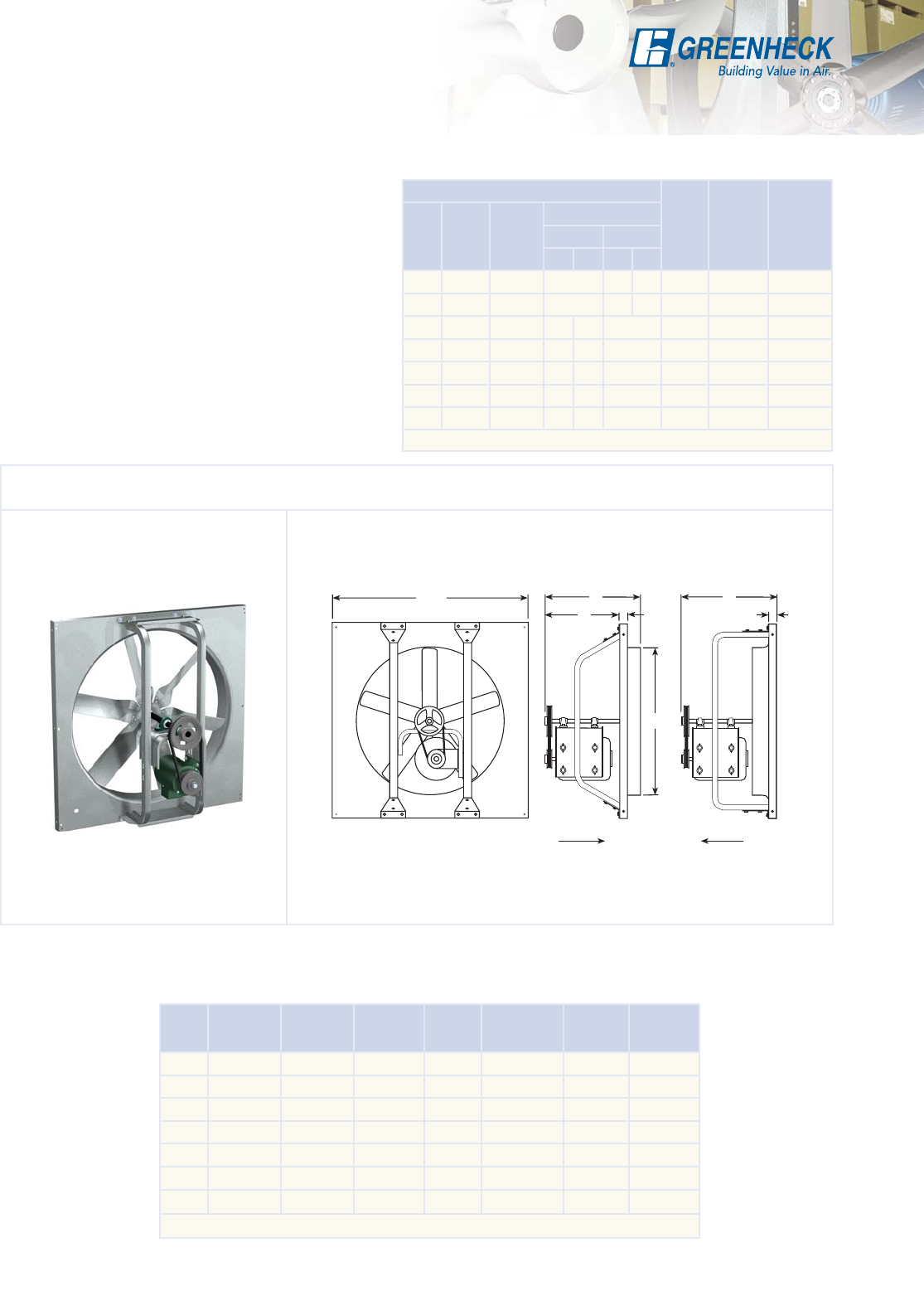 (508 to 1829 mm) for belt drive. Regardless of fan size, performance or duty level, all Greenheck sidewall