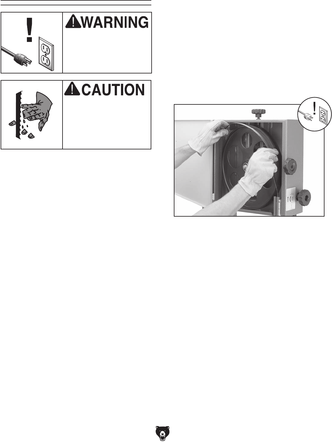 403 PLABEL-18 UNPLUG BANDSAW LABEL 409 G9987 GRIZZLY NAMEPLATE