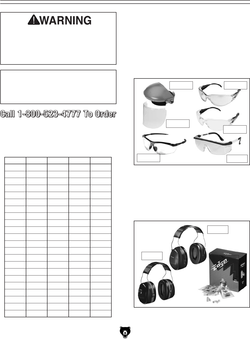 404 PLABEL-11 SAFETY GLASSES LABEL 410 P0457410 MODEL NUMBER LABEL