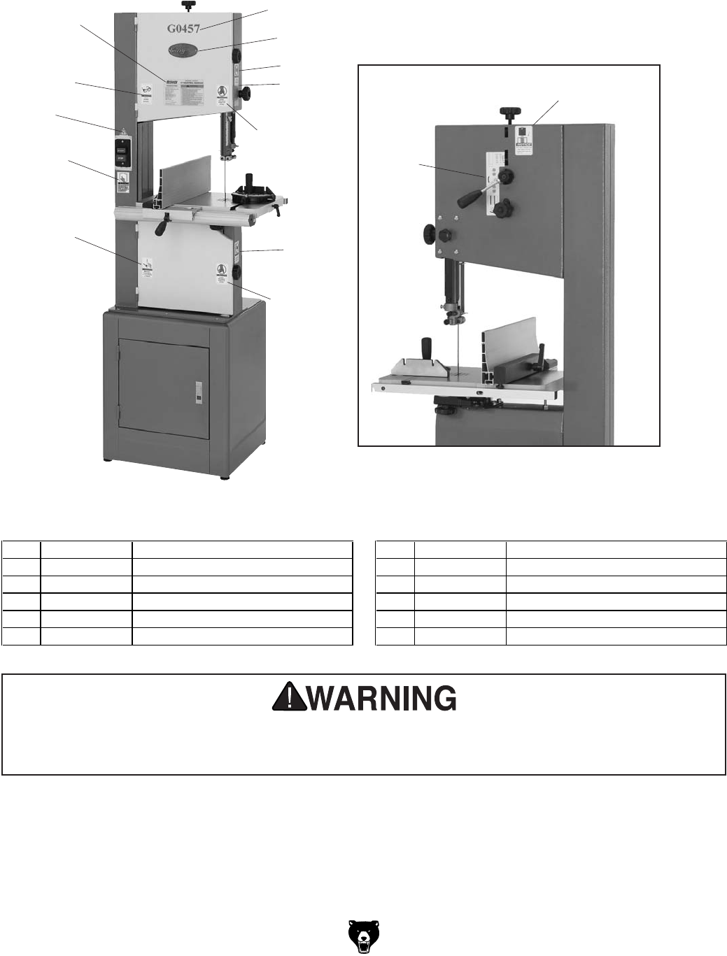 User Manual: Grizzly G0457 to the manual