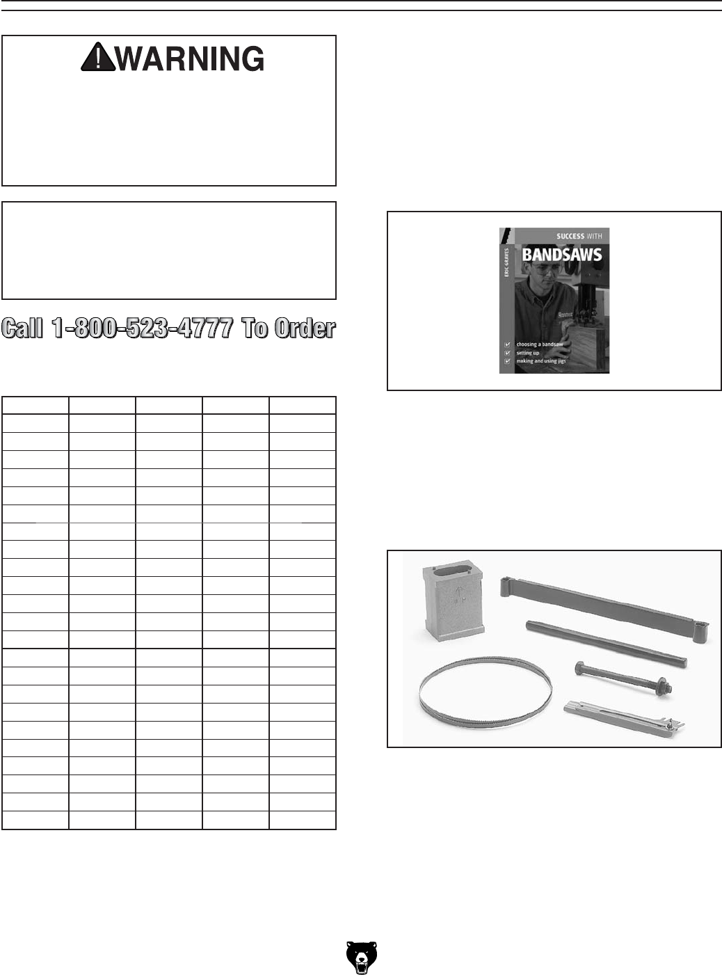 before resuming operations. For replacements, contact (800) 523-4777 or www.grizzly.com.