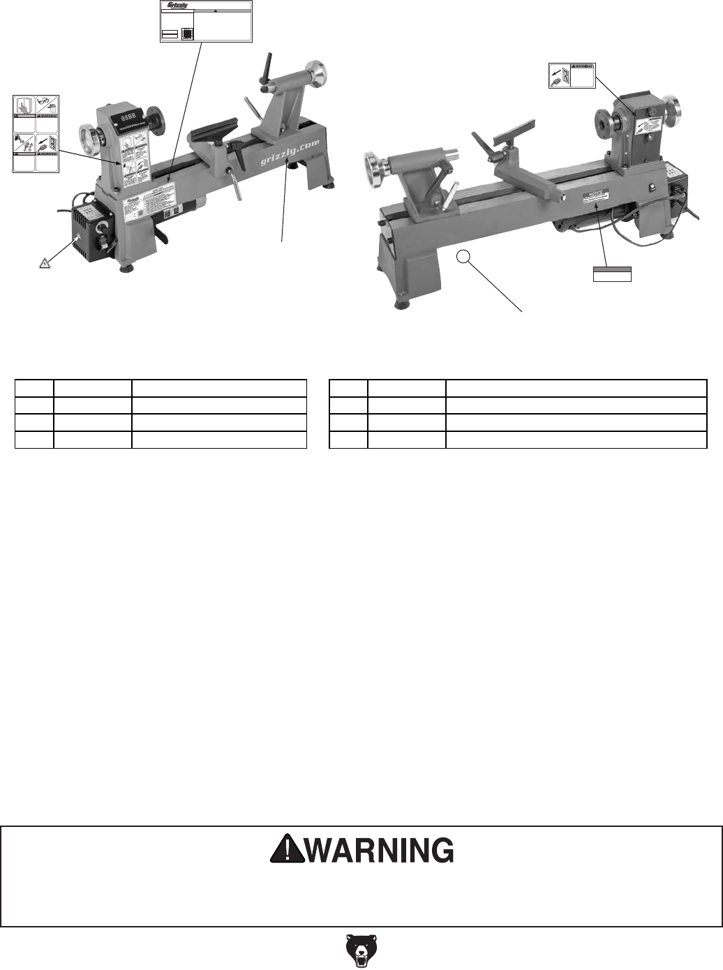 87 PT25920087 SAFETY WARNING LABEL 91 PT25920091 GRIZZLY GREEN TOUCH-UP PAINT