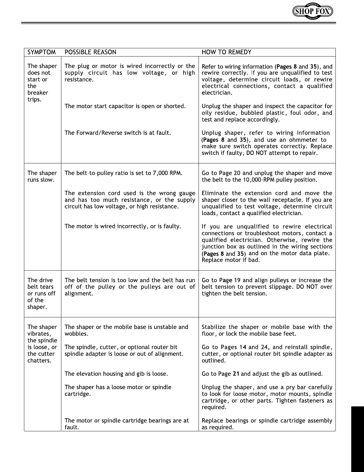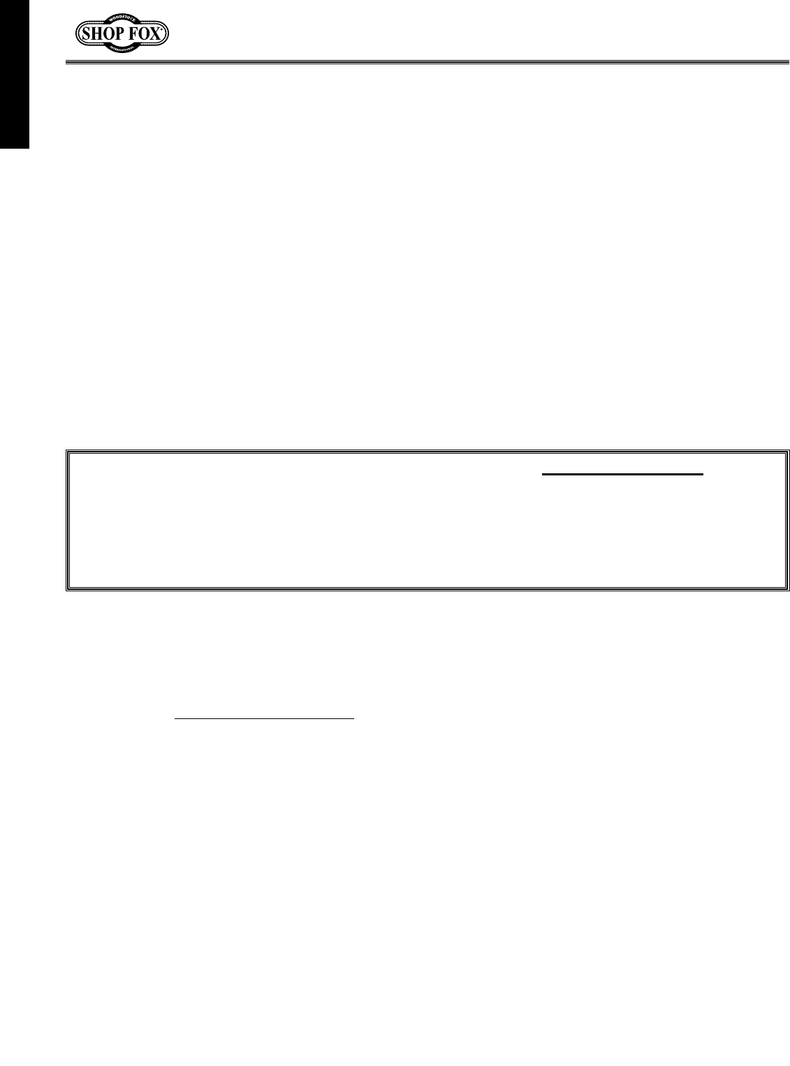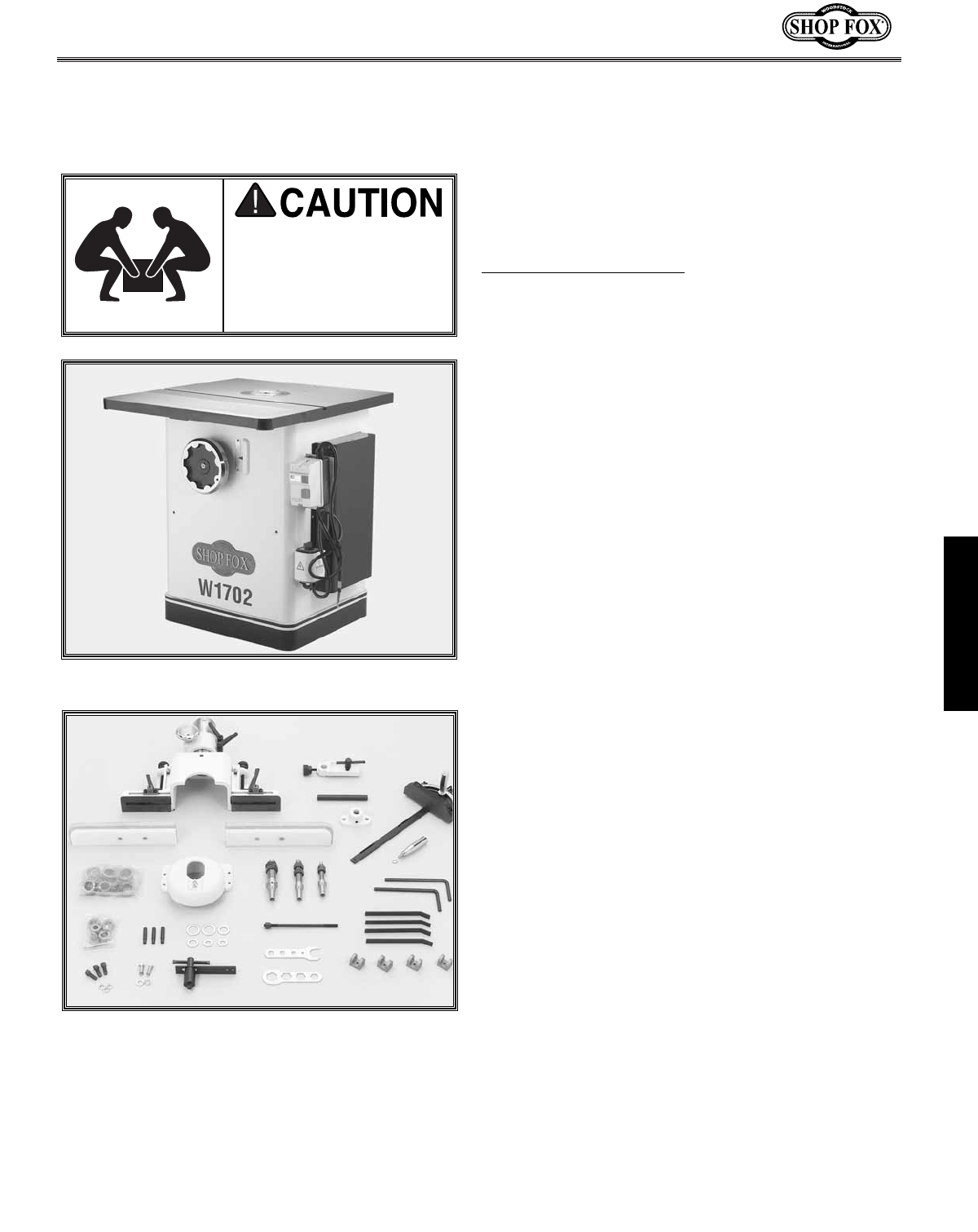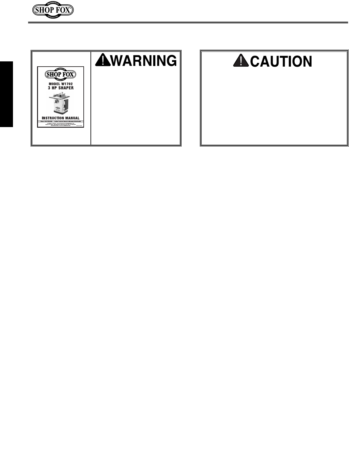 Your new SHOP FOX®Model W1702 3 HP Shaper is specially designed to provide many years of trouble-