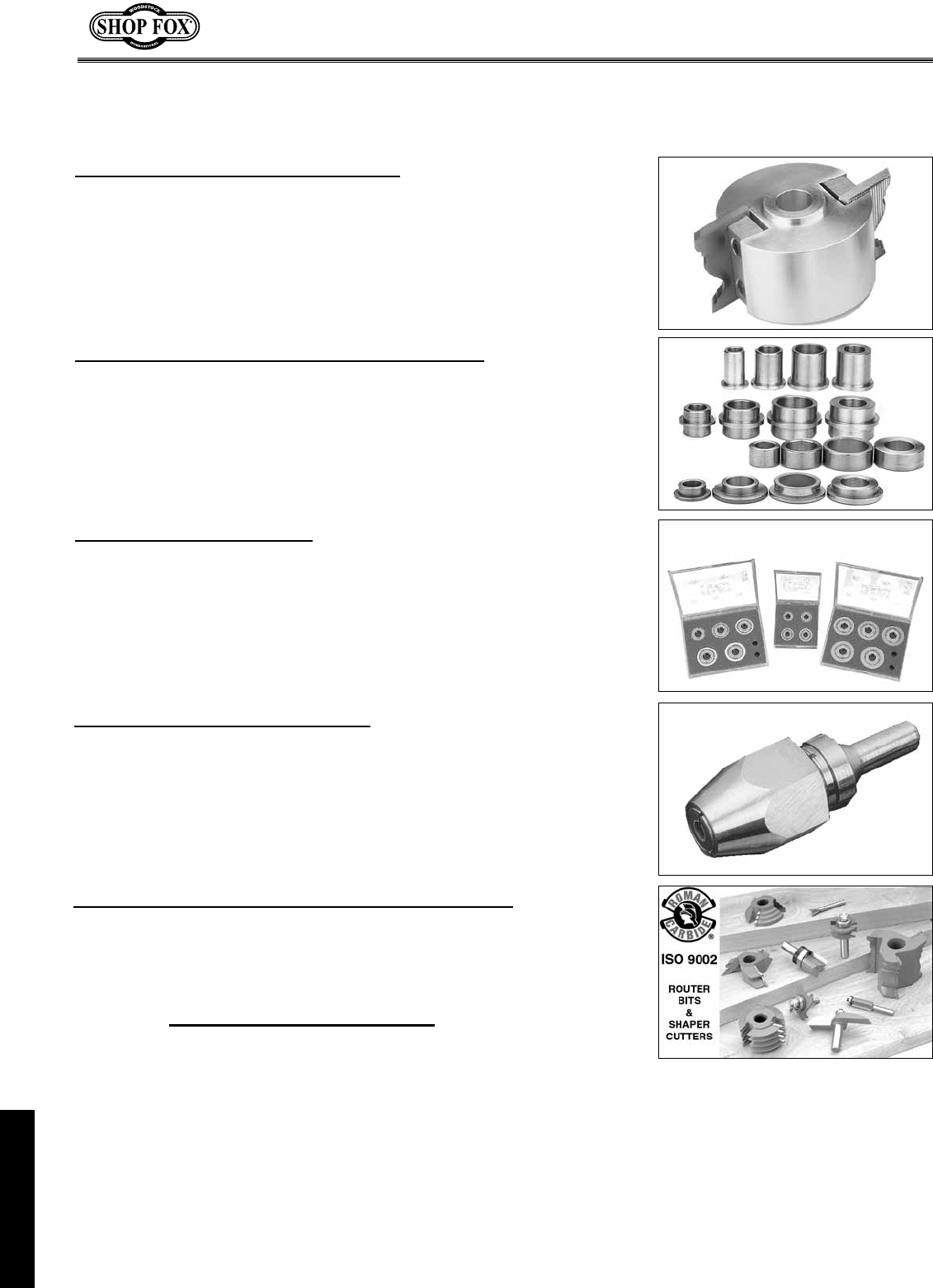 variety of spindle and shaper cutter sizes. Go to