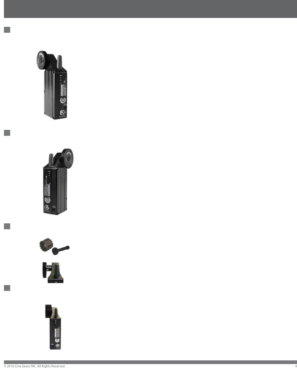 interchangeable gear heads (m 0.4 to m 1.0), the Cinegears Wireless