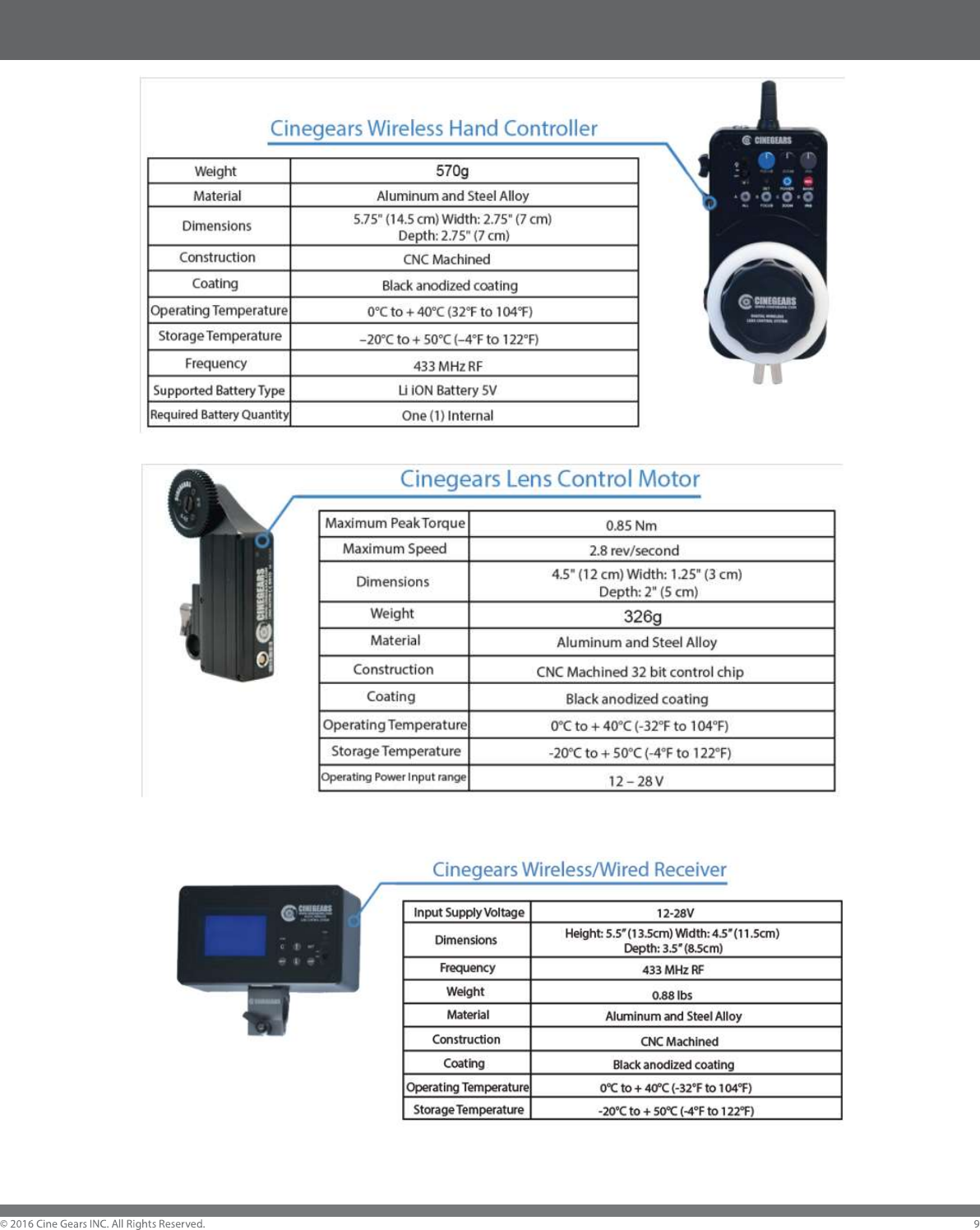 companies. This product and manual are copyrighted by CINEGEARS with all