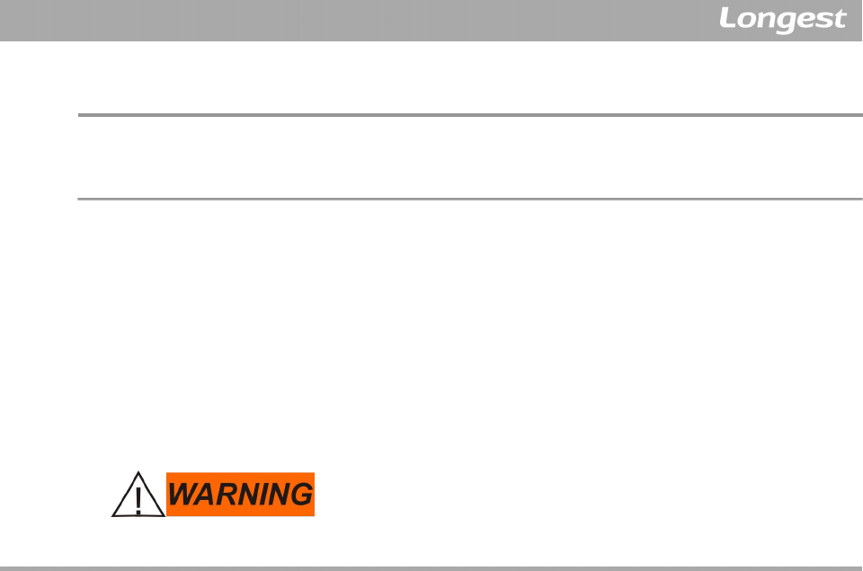 service@longest.cn to have the warranty be valid. Damages due to non-adherence to the User Manual