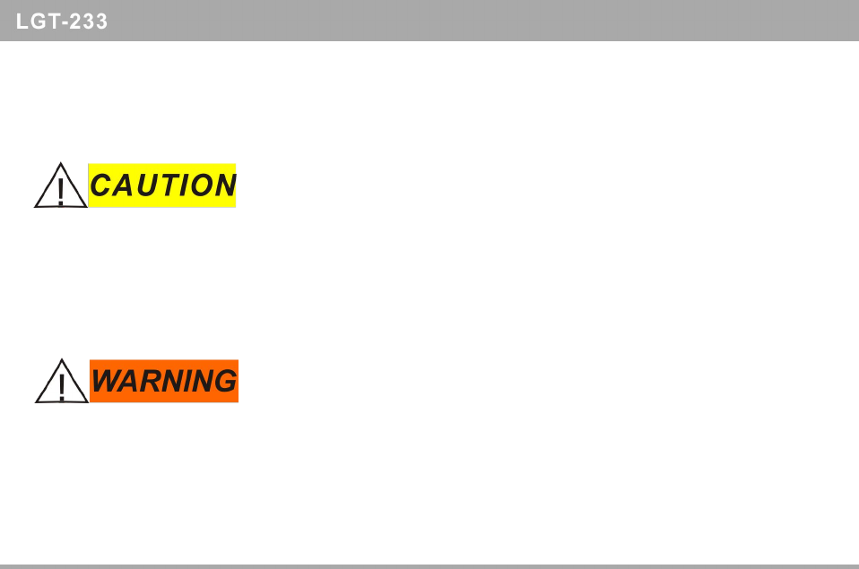 Text with a “CAUTION” indicator will explain possible safety infractions that could have the potential