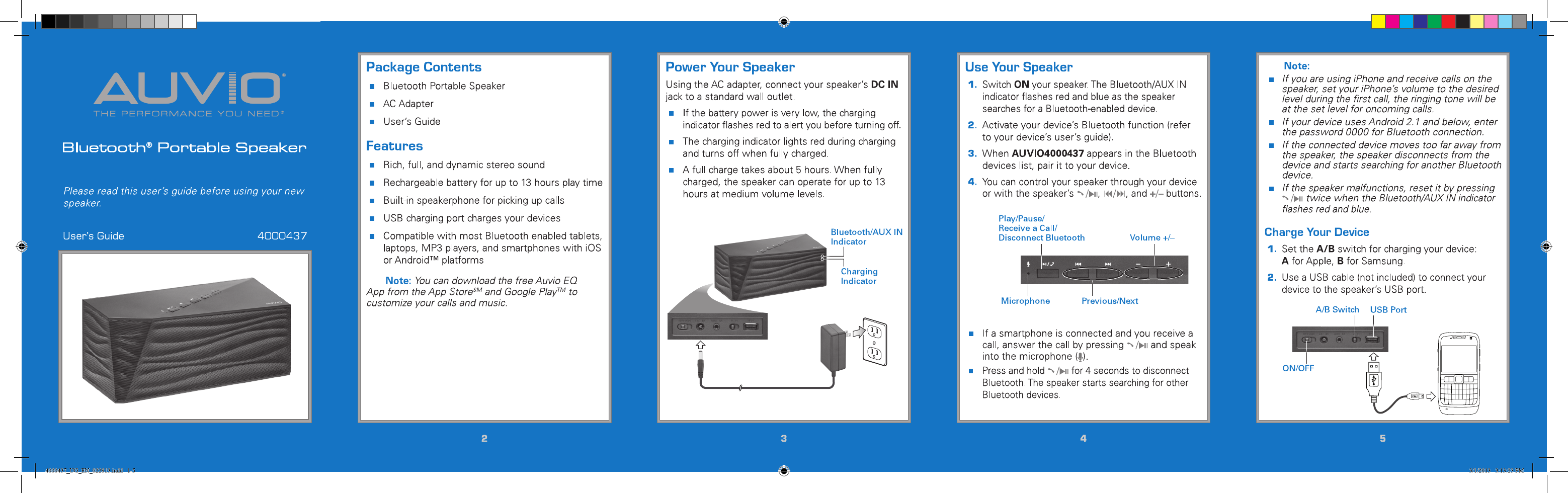 Guangzhou Panyu Juda Car Audio Equipment 4000437 Portable Bluetooth Speakers User Manual