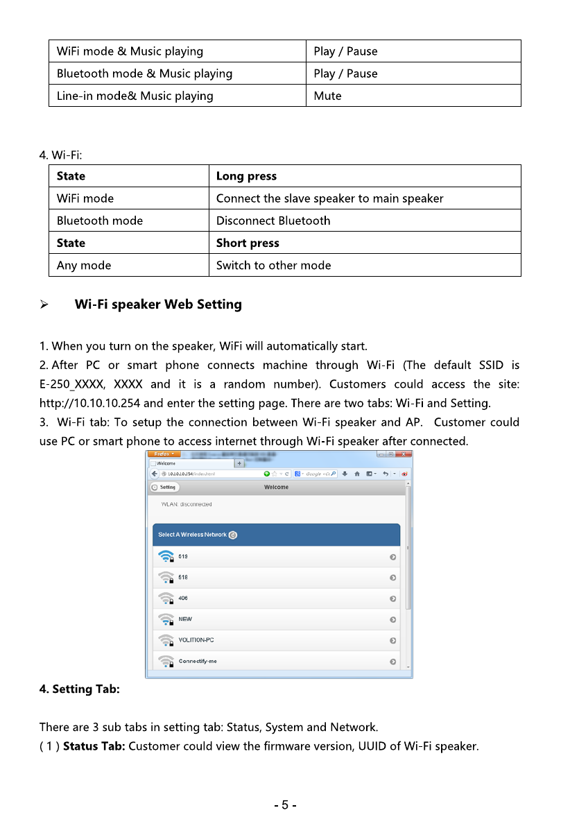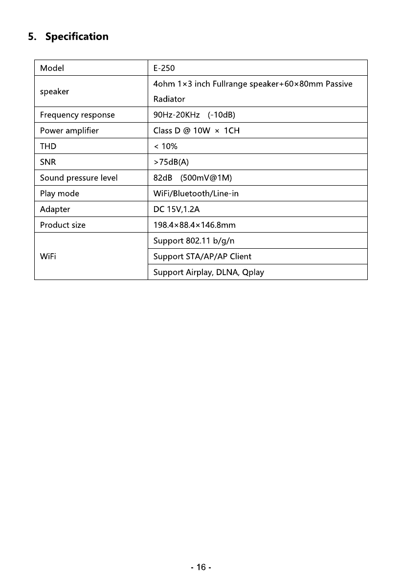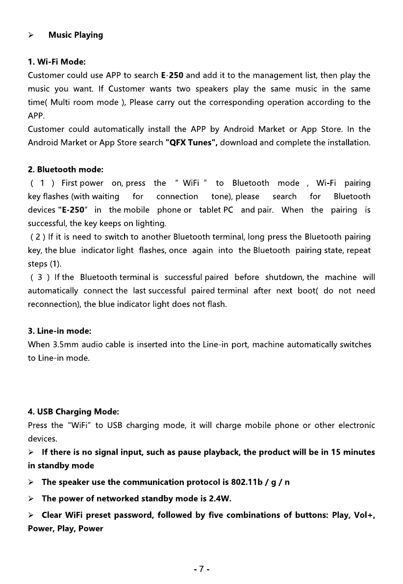 Guangzhou Rayer Acoustic Technology E-250 WiFi Speaker User Manual