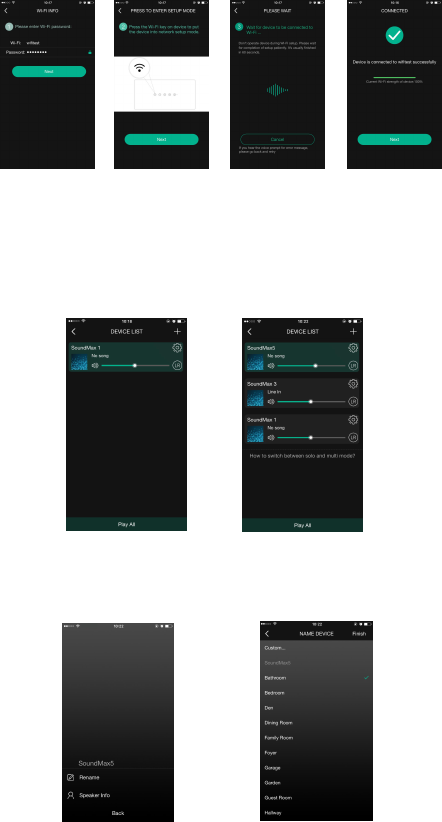 Champion WH-series can play music in two or more speakers at the same time. Slide to the left and enter the device list,
