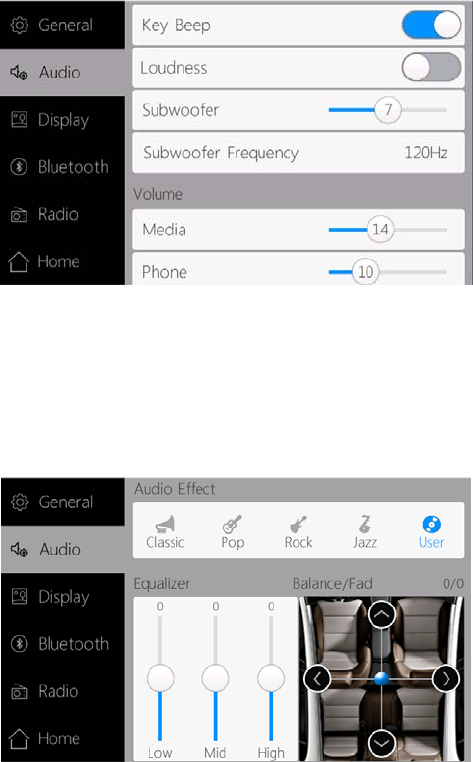 56.Show classic, pop, rock, jazz sound effect, sliding progress bar to custom sound effect;