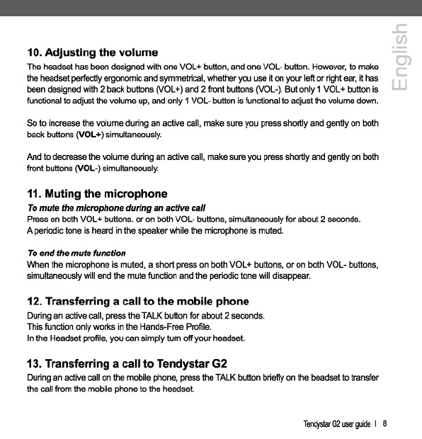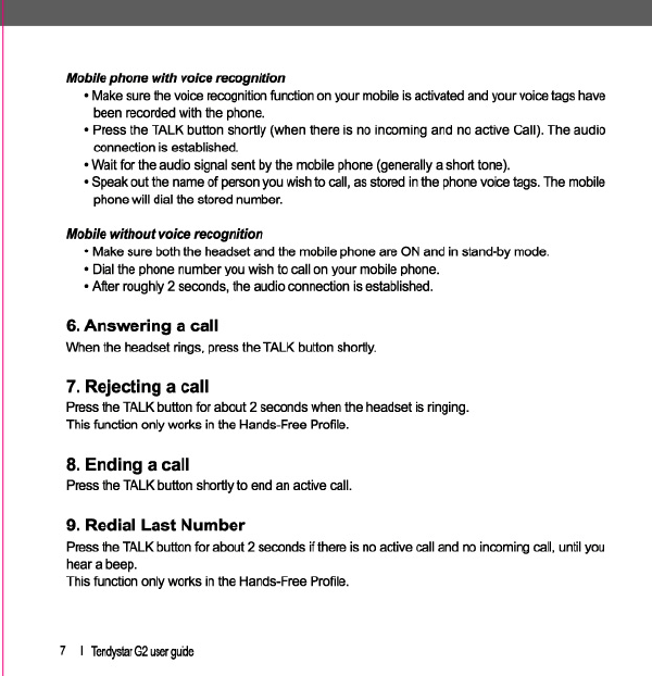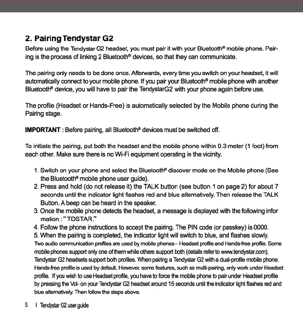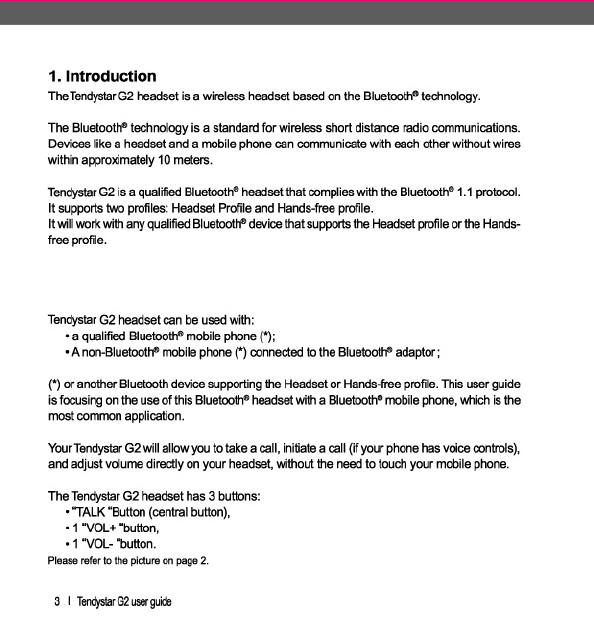 Guangzhou Tendystar Telecom G2 BLUETOOTH HEADSET User Manual USERS MANUAL