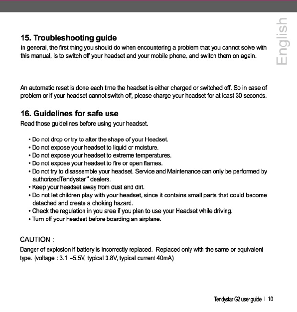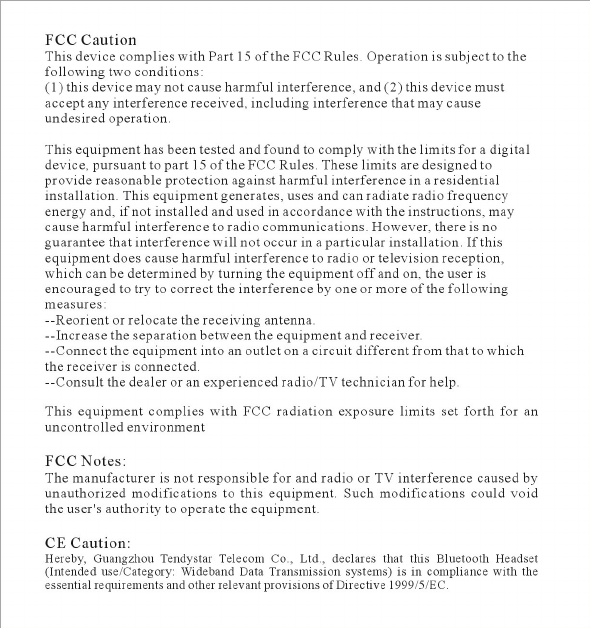 Guangzhou Tendystar Telecom Co., Ltd. BLUETOOTH HEADSET USERS MANUAL