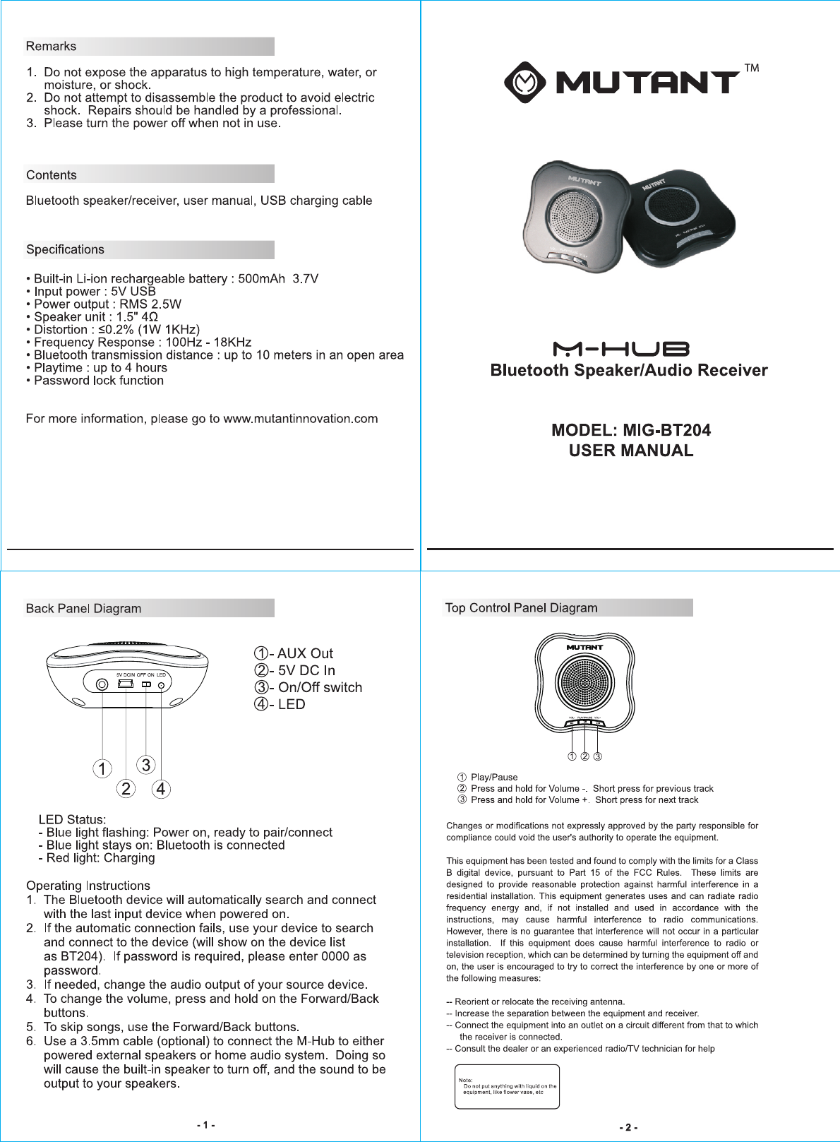 Guangzhou WOwe Tech PS-1300 Mini Bluetooth Speaker User Manual MIG BT204 PS 1300