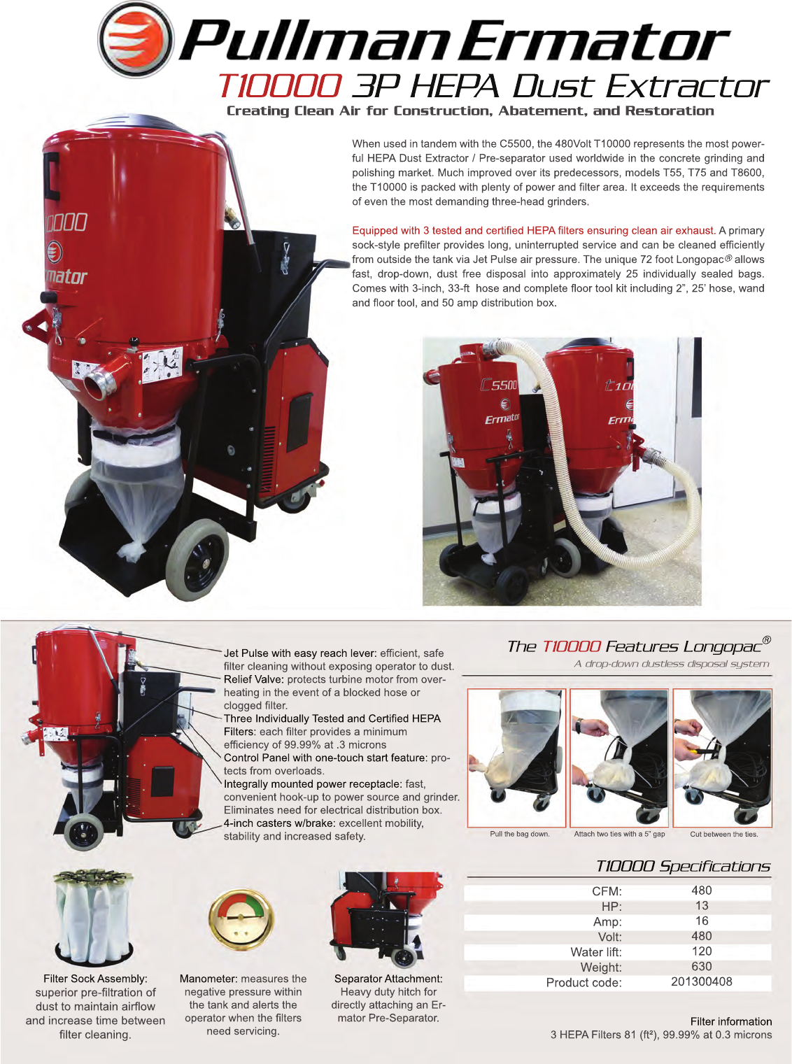 : Guide T10000-Salessheet-Web T10000-SalesSheet-Web Three Phase Dust Collectors 2016 Ermator manuals Niagara-Library