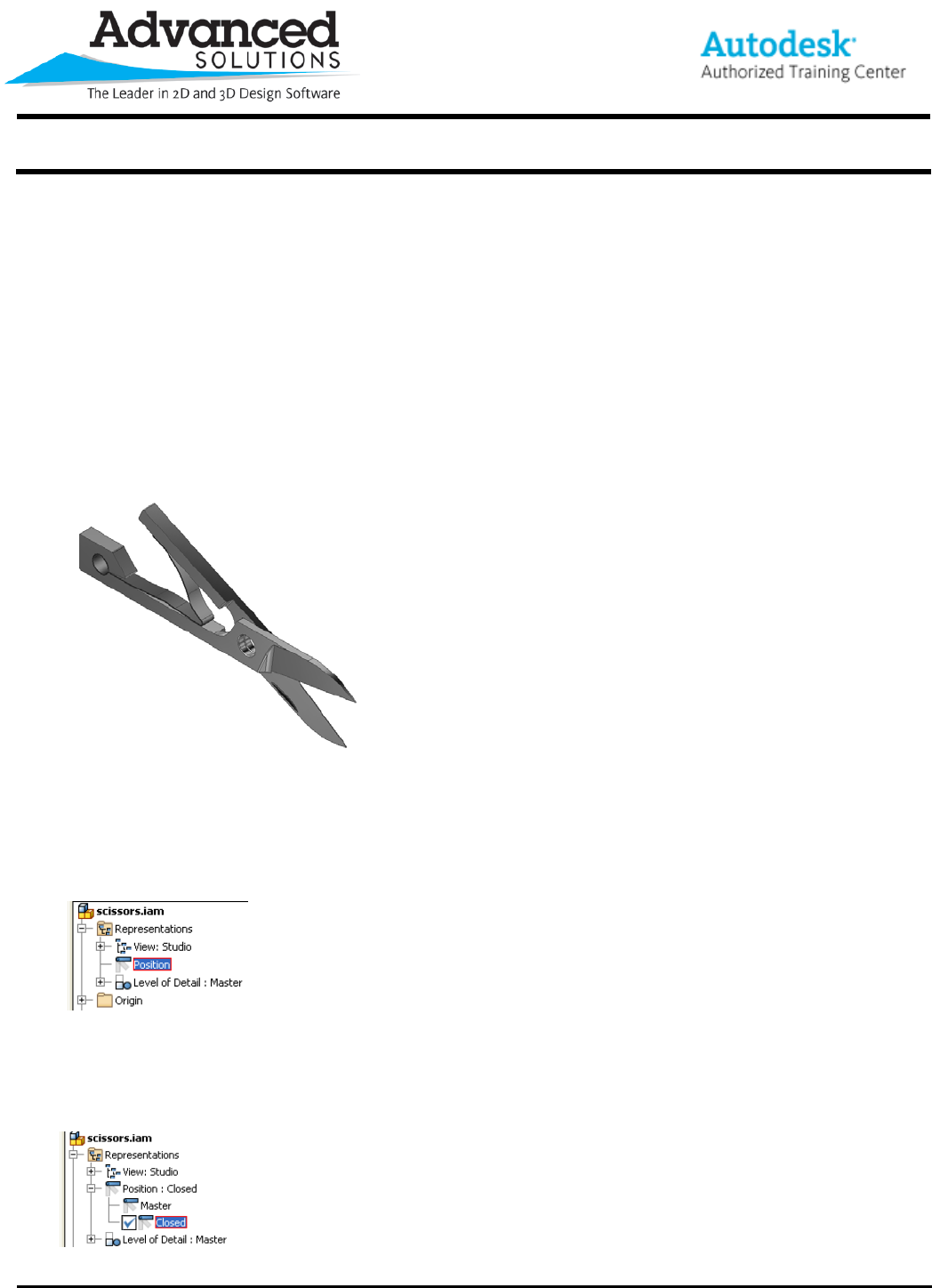 in the model browser of our assembly file. The options are under the Representations folderÆ’Position:’ See