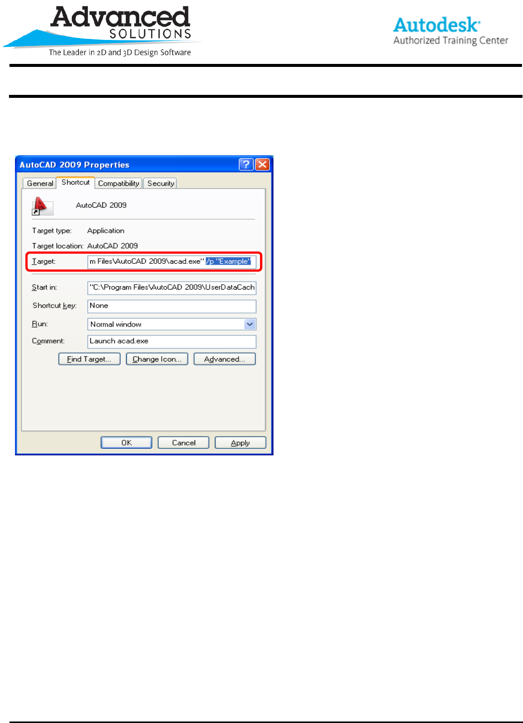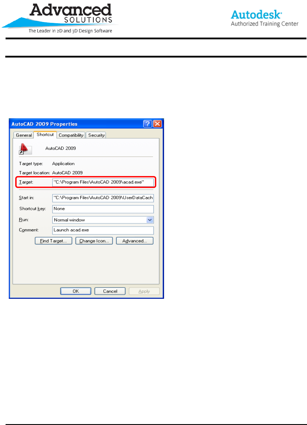 Figure 4 we can see that the target is pointing to acad.exe” (if you are using one of the vertical products this line