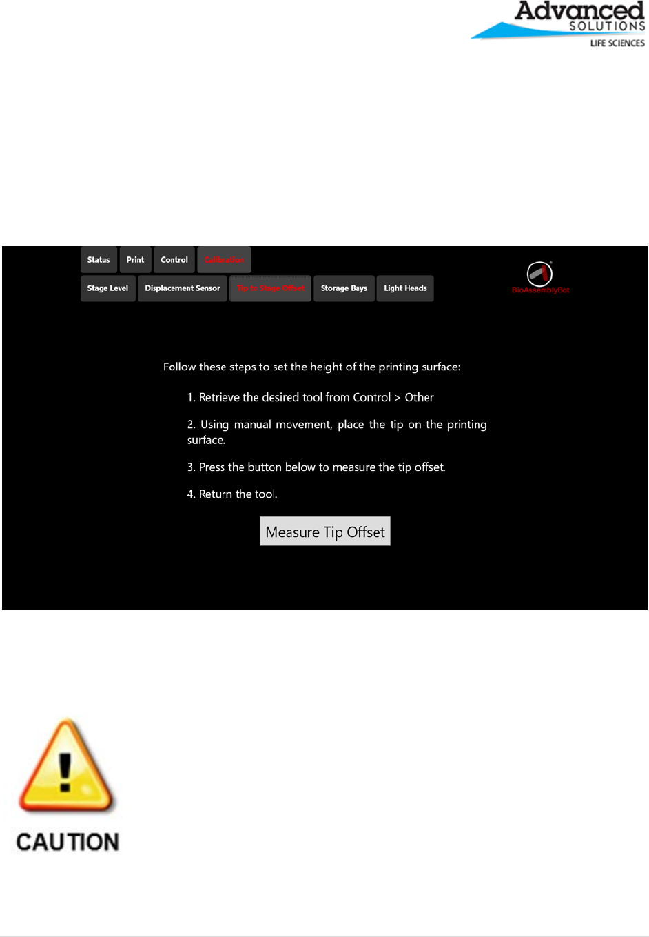 occurred on the BioAssemblyBot™ since the last calibration. If the print head time “elapses” in the