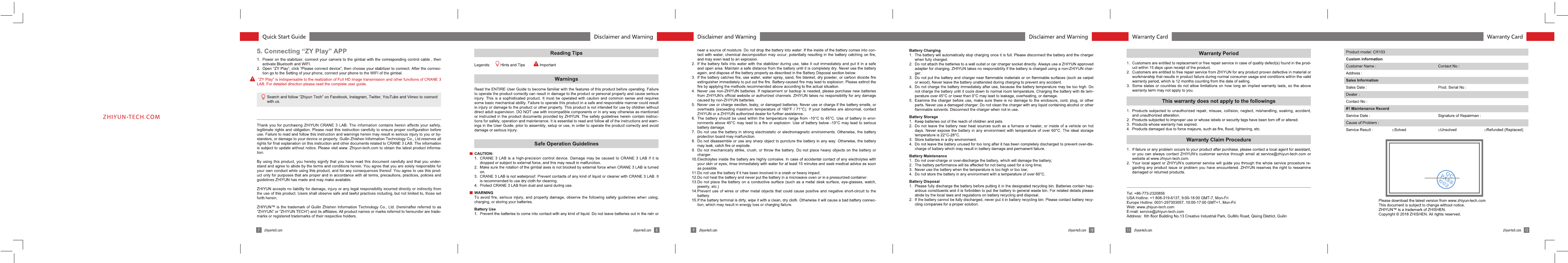 Guilin Zhishen Information Technology ZYCR103 ZHIYUN Professional Stabilizer with Image Transmission CRANE 3 LAB User Manual Part 2