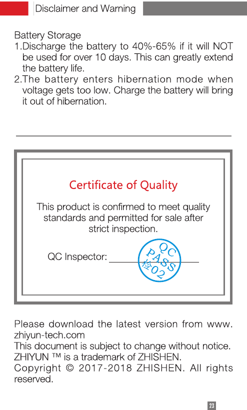 Guilin Zhishen Information Technology ZYSA4 Zhi yun 3-Axis Stabilizer User Manual