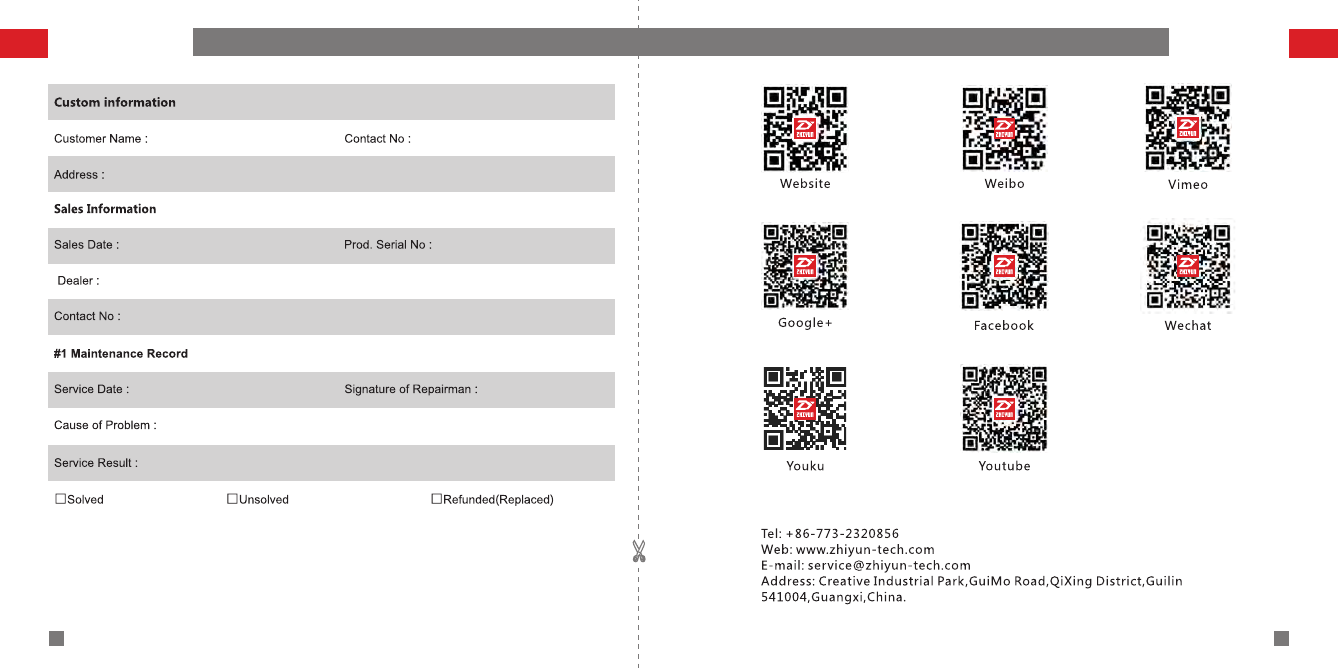 regarding any product issue or problem you have encountered. ZHIYUN reserves the right to