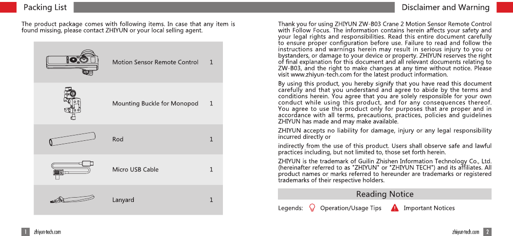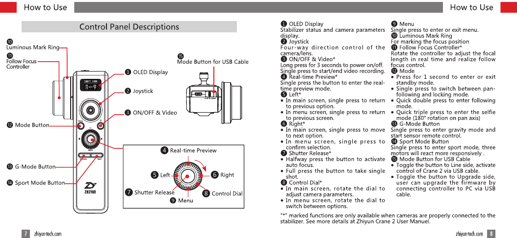 Guilin Zhishen Information Technology Co.,Ltd. Crane 2 Motion Sensor Remote Control with Follow Focus Users Manual