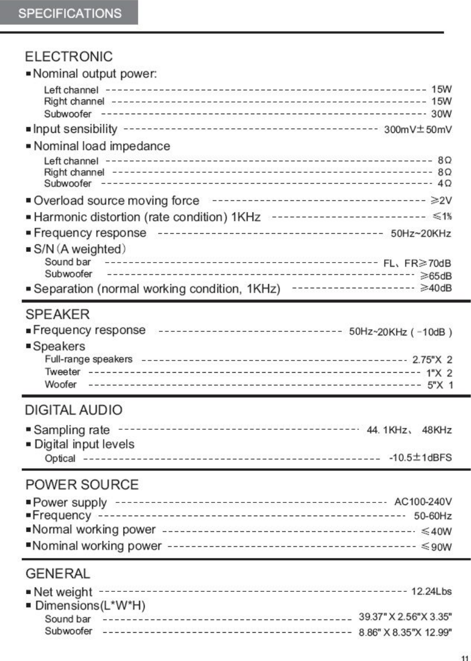 Guoguang Electric ESB205 2.1 Sound Bar System User Manual