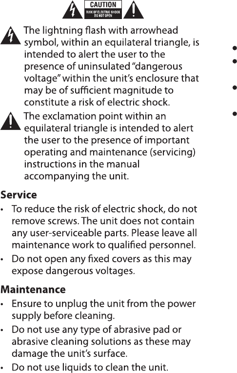 Ne vaporisez pas d'aérosol vers ou à proximité de l'unité.