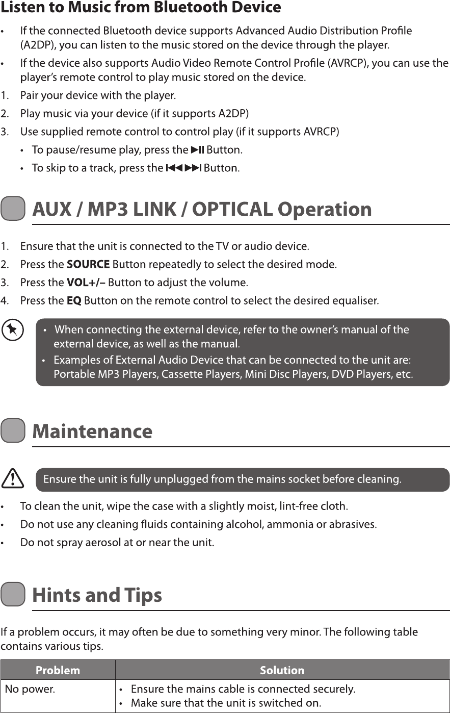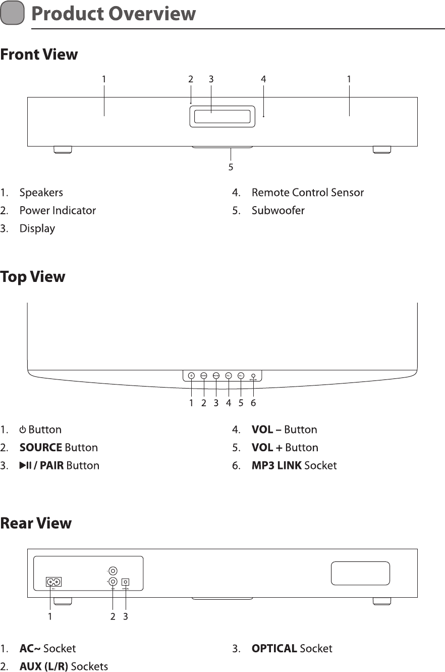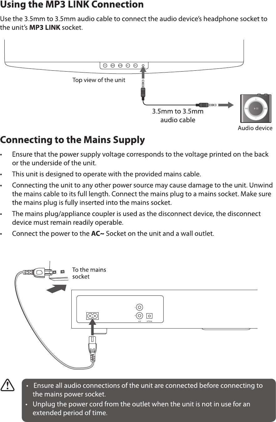 Fentes AUX IN (L/R), Fente MP3 LINK, Fente OPTICAL,