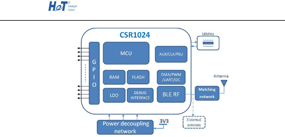 HET-BC1024 is a Bluetooth Low energy module, using CSR1024 as the main chip, which is a