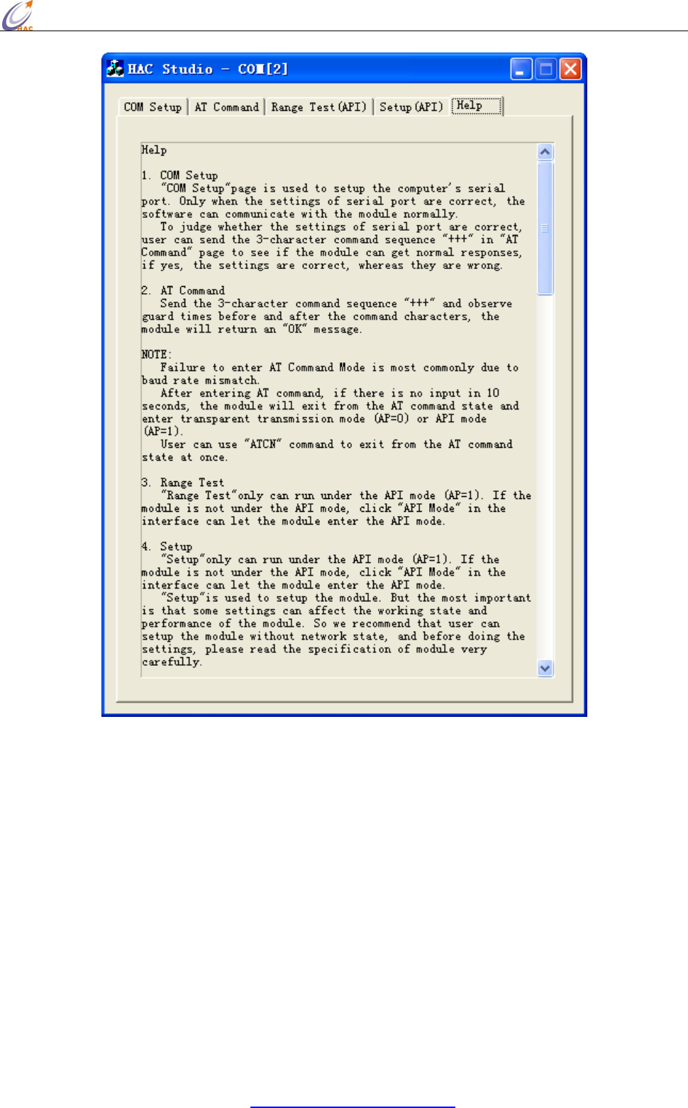 working state and performance of the module. "Setup" only can run under the API mode (AP=1).