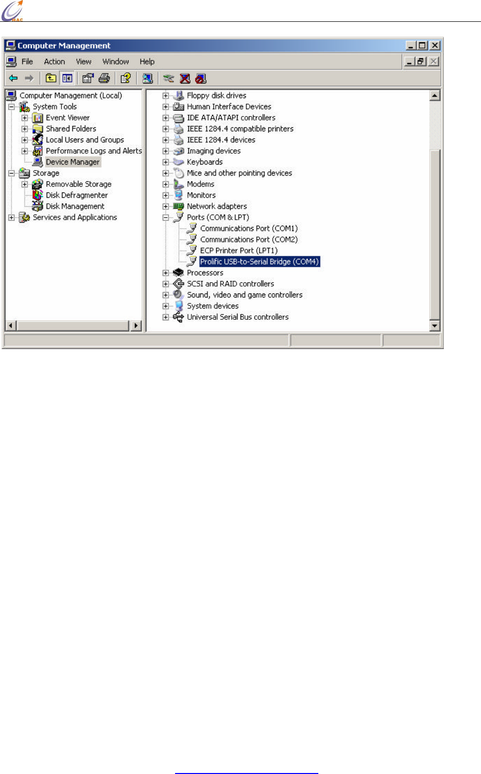 6. To verify and set the parameters of the serial port, open the Computer Manager