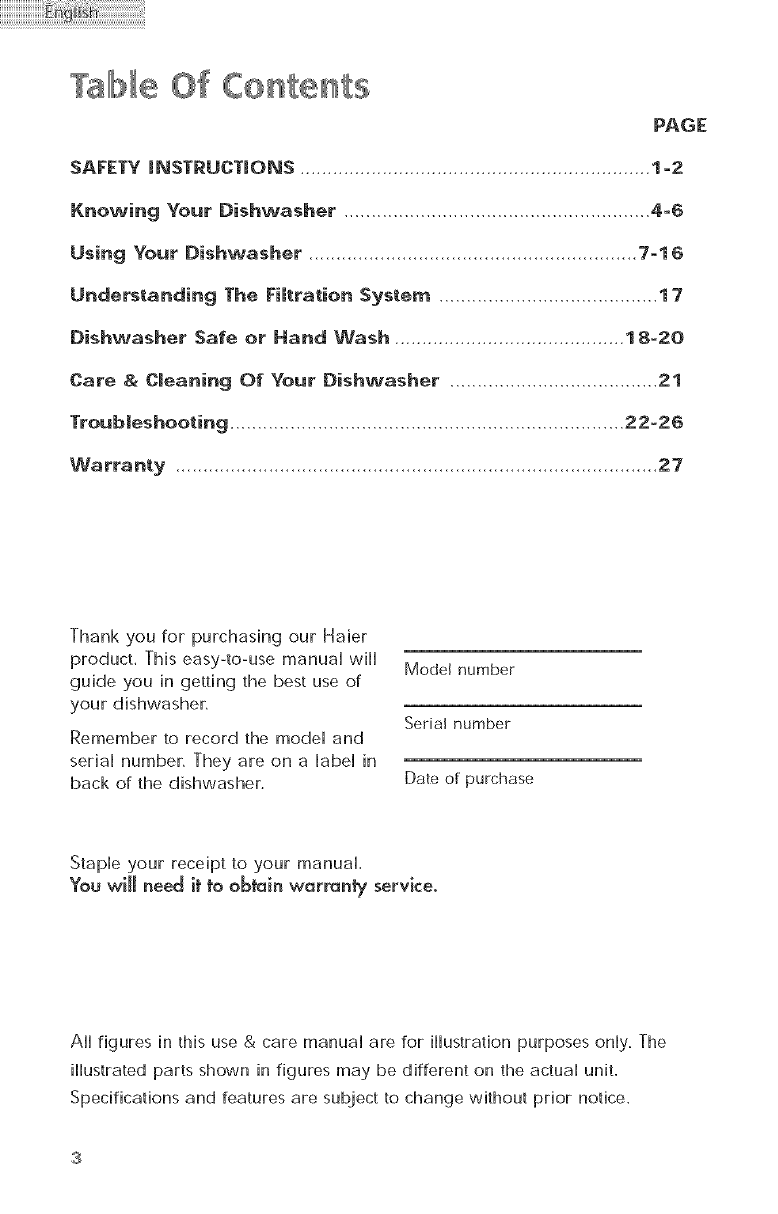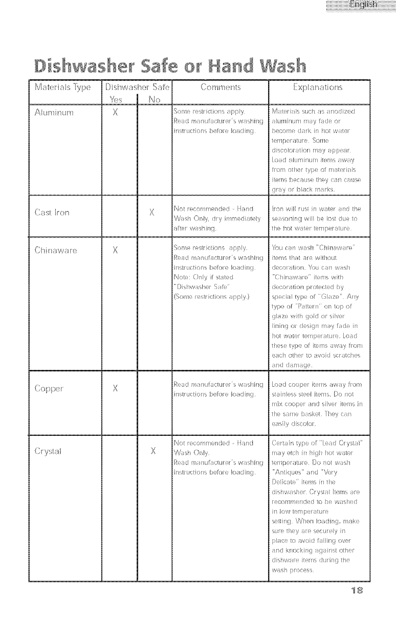 Dishwasher Safe or Hand Wash .......................................... 18-20