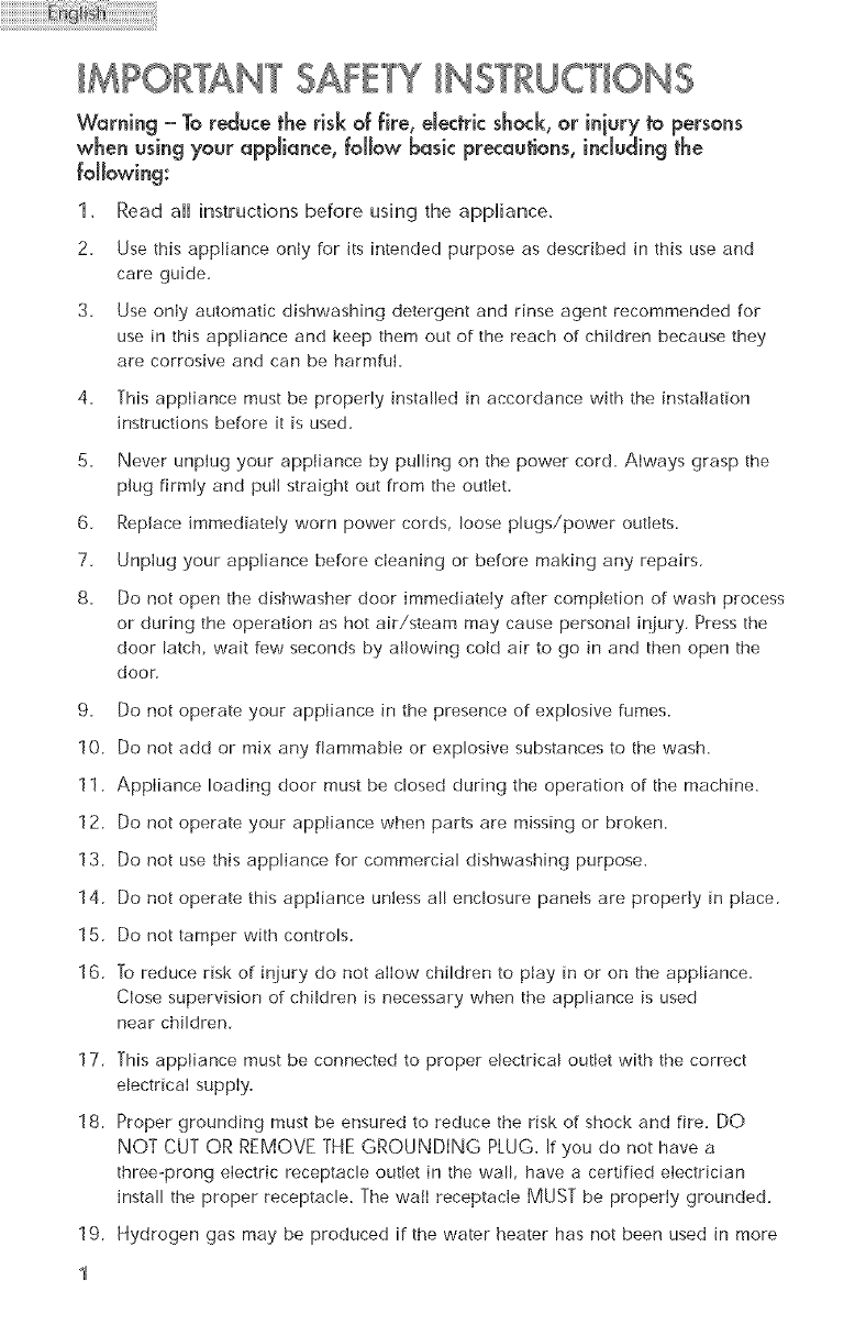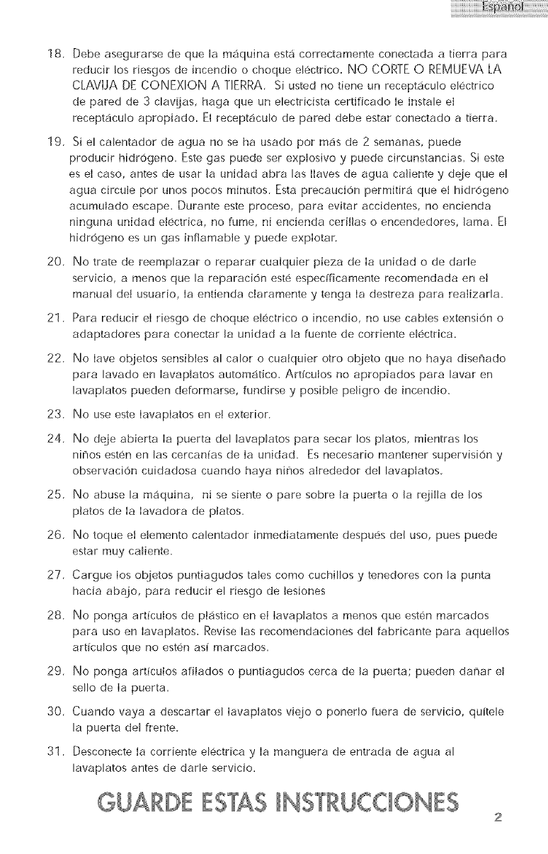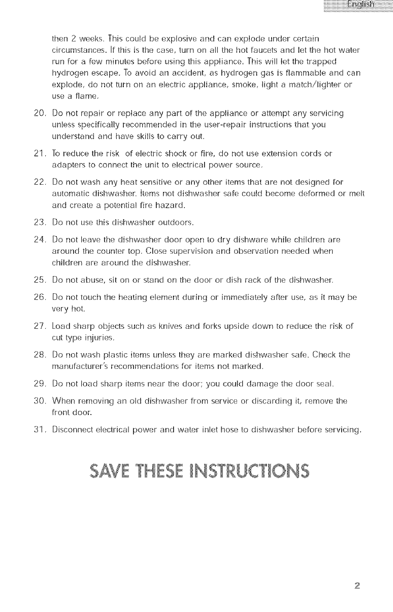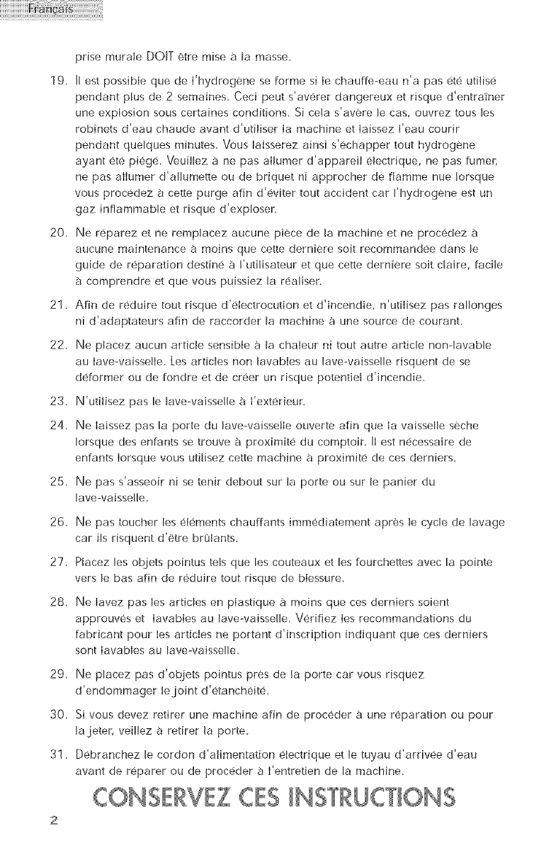 31.Disconnectelectricalpowerandwaterinlethosetodishwasherbeforeservicing.