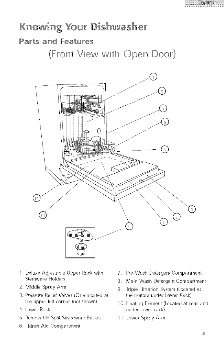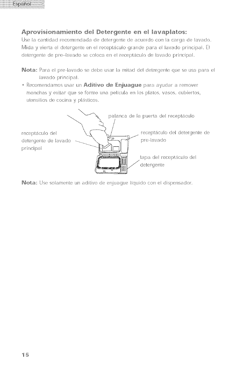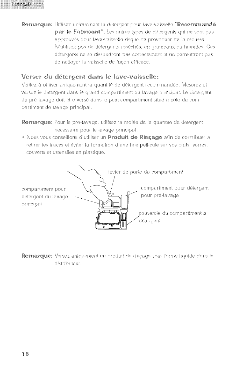 3 Use only automatic dishwashing detergent and rinse agent recommended for