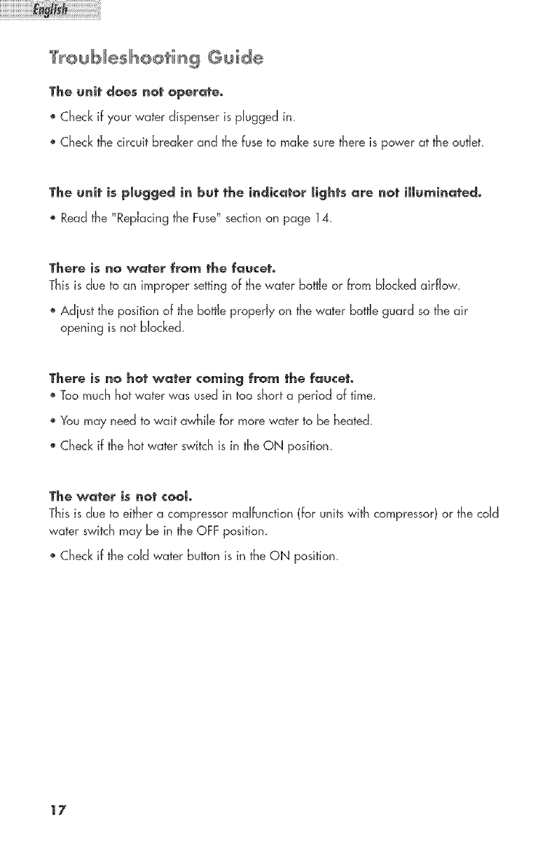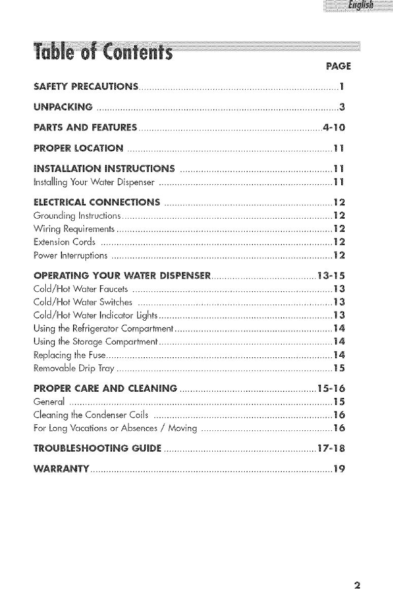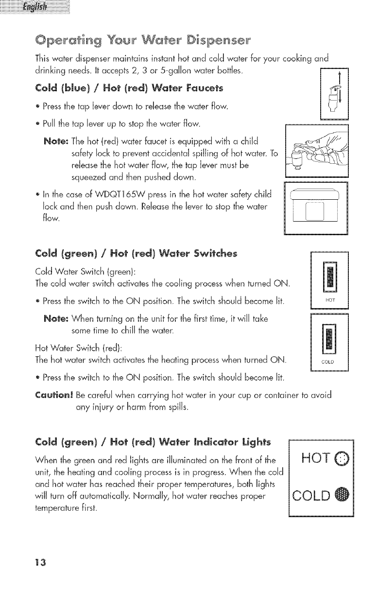 Cold/Hot Water Indicator Lights.................................................................. 13