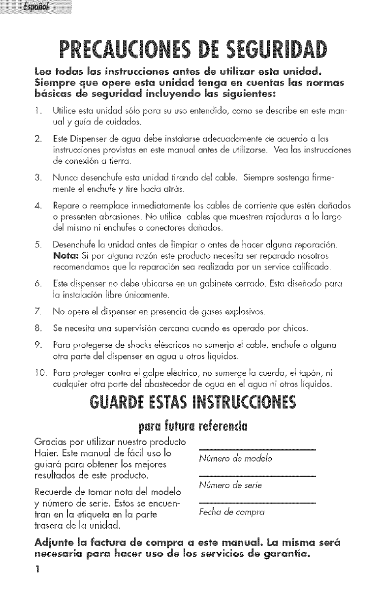 Esta garanfia Je da derechos Jegdes